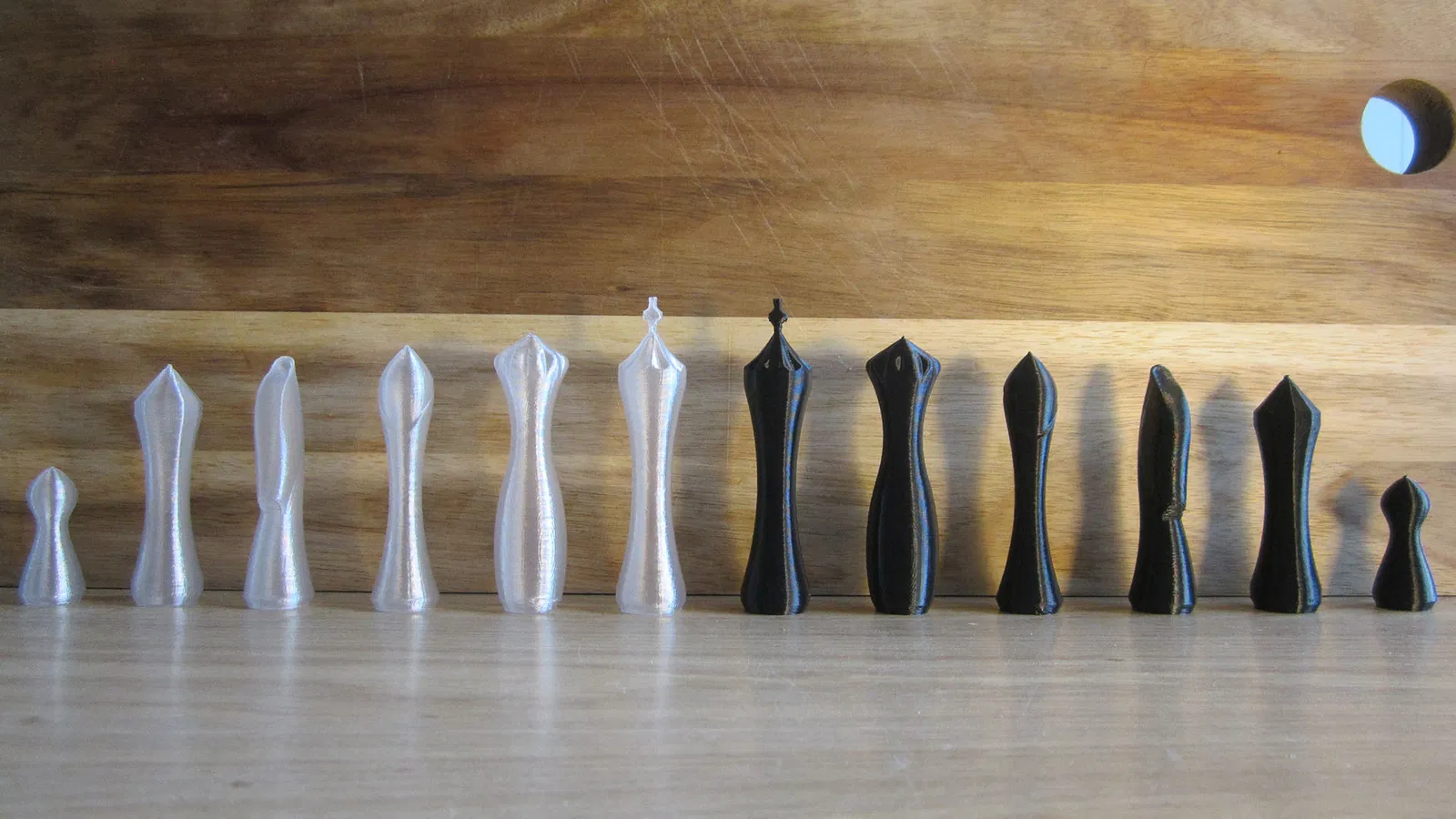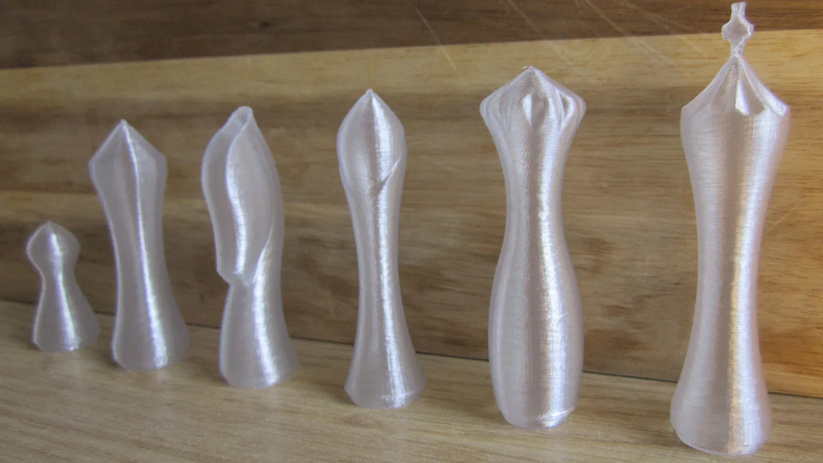 Đây là một bộ cờ vua mà tôi đã thiết kế nhiều năm trước để in tuần tự ("Hoàn thành các đối tượng riêng lẻ" trong PrusaSlicer) để có bản in cực nhanh mà không có đường nối do chế độ bình xoắn ốc.