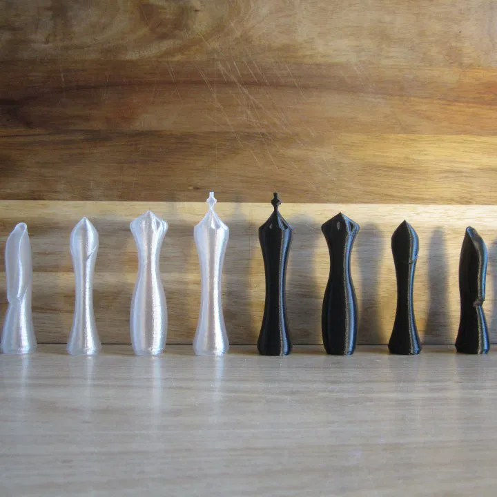 Bộ quân cờ vua kích thước lớn, in cùng nhau bằng chế độ bình hoa xoắn ốc để có vẻ ngoài liền mạch, có trọng lượng bằng đồng xu. Hướng dẫn chi tiết cách in và cài đặt PrusaSlicer cho thẩm mỹ tốt nhất. Tải về bộ quân cờ độc đáo này ngay!