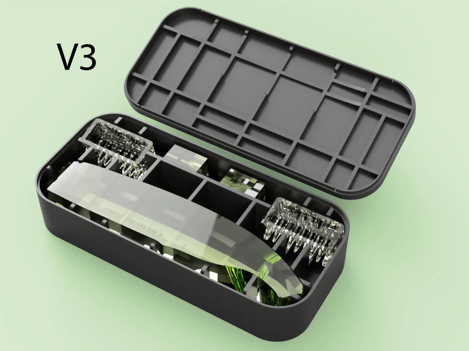 Hộp đựng du lịch Philips Oneblade ''Simplicity'' tối giản, chức năng 100% với khớp gài, không cần hỗ trợ. Phiên bản 3 có cải tiến về khớp đóng, bố cục, chữ khắc trên nắp và dung sai. Vừa vặn, gọn nhẹ, lý tưởng cho du lịch.