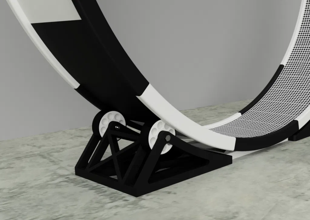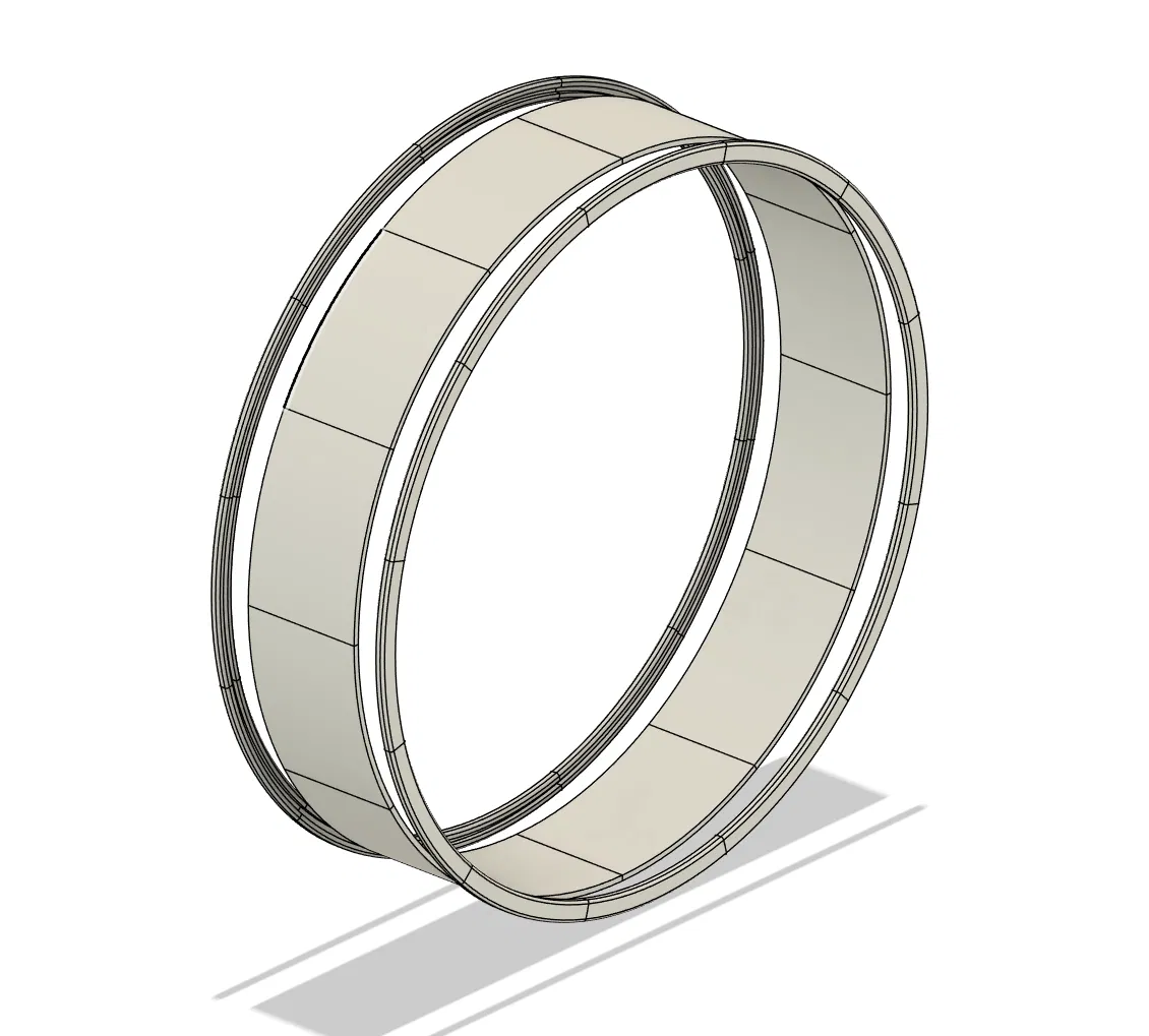 Sợi nhựa: Nhiều thiết kế tôi đã thấy được làm cho trông bóng bẩy và hiện đại nhưng cuối cùng lại sử dụng rất nhiều sợi nhựa. Một thiết kế tôi thấy đã sử dụng hơn 9kg! Thiết kế của tôi được tạo ra để nhẹ nhàng và dễ in nhất có thể. Bánh xe là một thiết kế rãnh và mộng đơn giản với độ dày chỉ 8mm trên rãnh và một vành gia cố cũng đóng vai trò là hệ thống kết nối cho các phân đoạn bánh xe. Đế là thiết kế khung xương nhẹ nhàng sử dụng rất ít vật liệu trong khi vẫn giữ được độ bền đáng kinh ngạc.