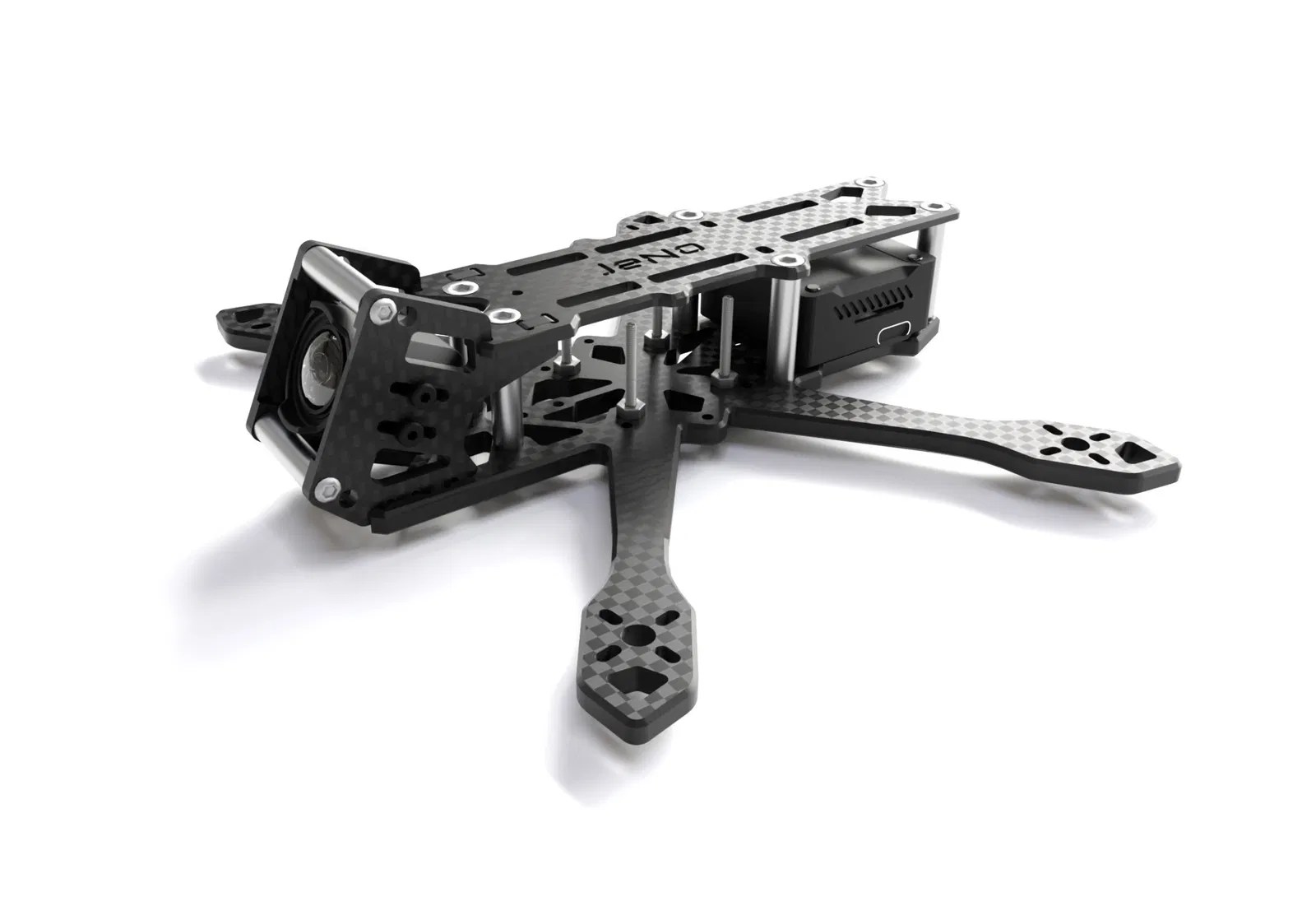 • 1 cái ở giữa cho mid plate 5 Vít M3x10mm cho pressnuts   ##### Cố định LiPo JeNo 3 cho phép sử dụng dây đeo chống trượt nhờ các lỗ luồn dây. Bạn cũng có thể sử dụng LiPo pad nếu muốn. ### 7. Lắp ráp Tìm nhiều ví dụ lắp ráp trên trang DroneBuilds của WE are FPV. Một vài lưu ý trước khi lắp ráp khung gầm: * Nếu điện tử của bạn yêu cầu vít M3, bạn sẽ cần phải khoét rộng nhẹ các lỗ, theo mặc định chúng được thiết kế cho M2 (cẩn thận không hít phải bụi carbon).