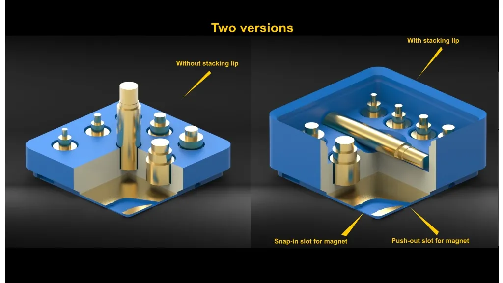 Đây là khay Gridfinity đựng đầu ốc vít xoắn Ruthex, có hai phiên bản: có và không có gờ xếp chồng. Thiết kế này cho phép dễ dàng thay đổi nam châm mà vẫn đảm bảo độ chắc chắn, khác với các loại gắn cố định thông thường. Tham khảo các mẫu Gridfinity liên quan và cài đặt in chi tiết.