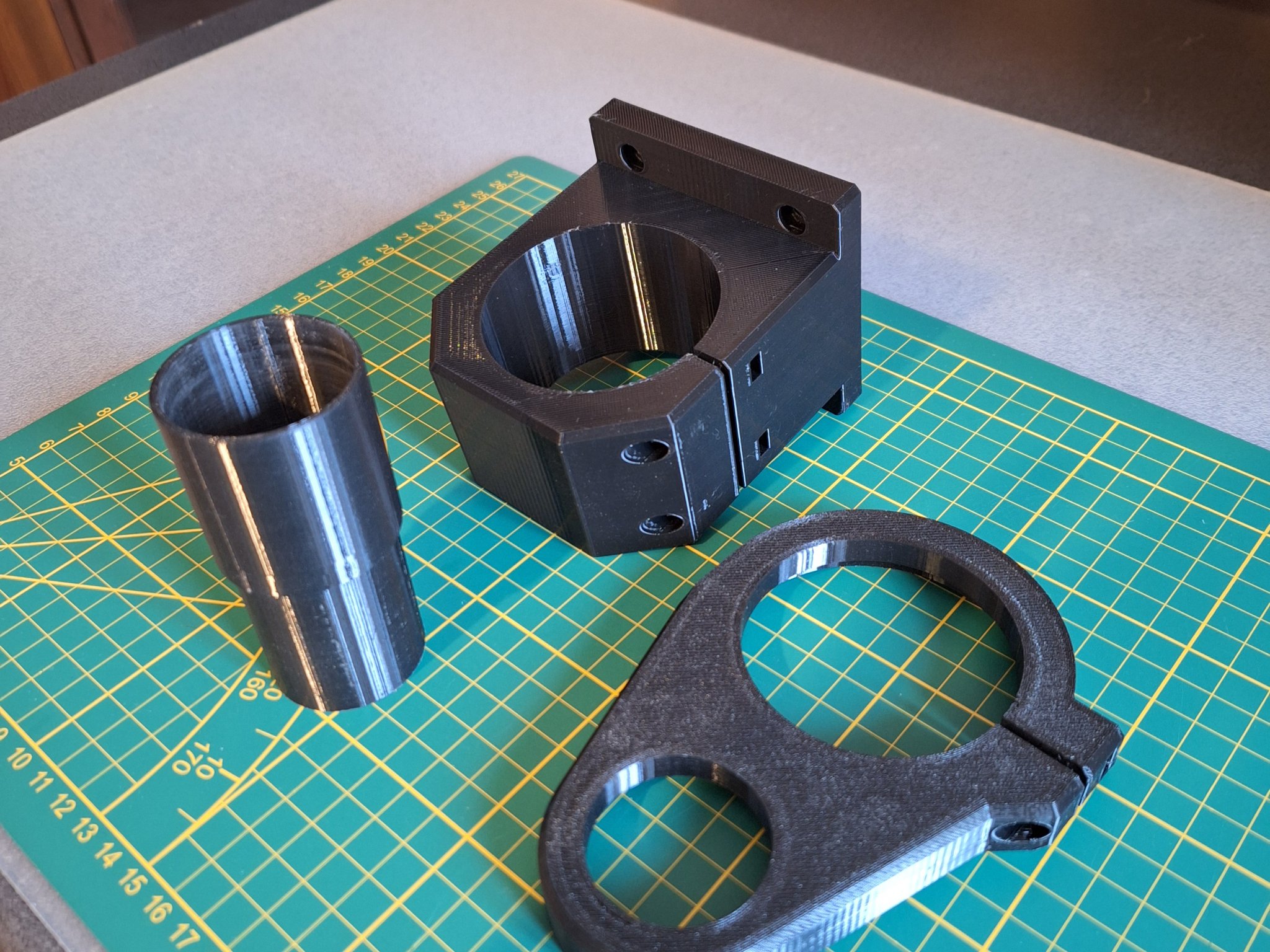 Về chất liệu in, tôi ưu tiên dùng PETG vì nó chịu nhiệt tốt hơn, do trục chính sinh nhiệt. Tôi chưa thử nghiệm với các vật liệu khác, vì sau nhiều tháng sử dụng, tôi chưa gặp bất kỳ vấn đề gì.