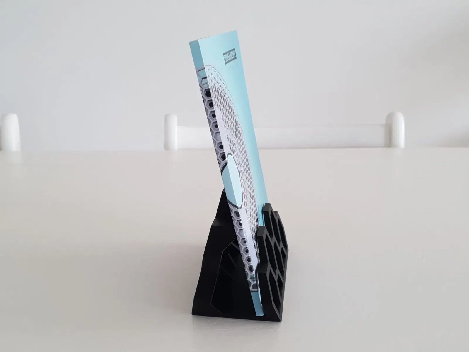 Tui làm cái chân đế này để trưng bày cuốn Prusament Portfolio thiệt đẹp. Để trên bàn làm việc, lúc nào muốn đặt mua prusament mới là có liền. Ngoài ra, còn dùng được cho các sách A5 khác dày khoảng 10mm. In bằng PLA đen, không cần support.