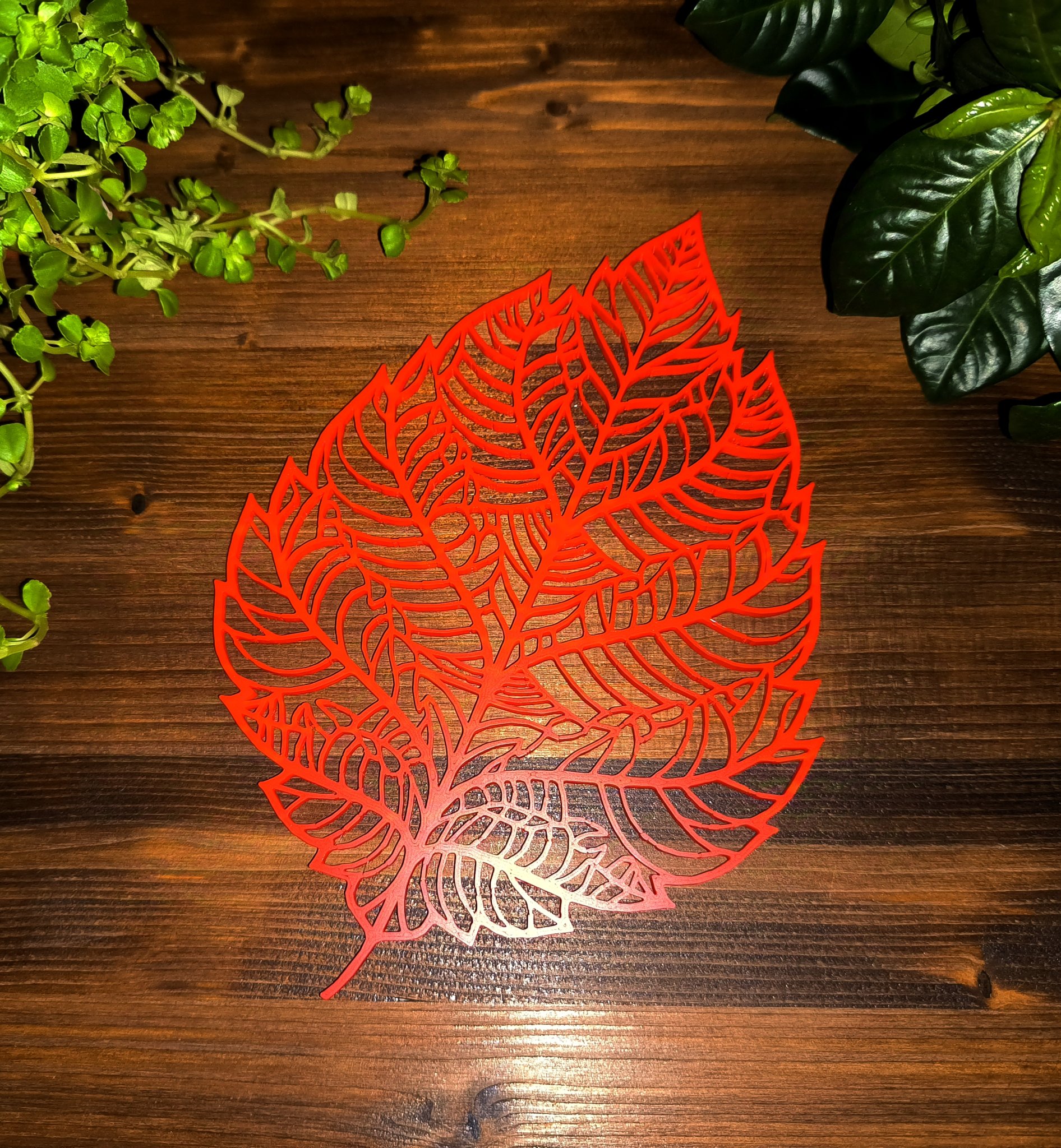 Chiếc lá sồi với thiết kế voronoi độc đáo, giống như đường vân trên lá thật. Có thể dùng làm móc khóa, đế lót ly, bông tai hay đồ trang trí nhà cửa. Mô hình dễ in, không cần support, phù hợp với mọi loại sợi nhựa.