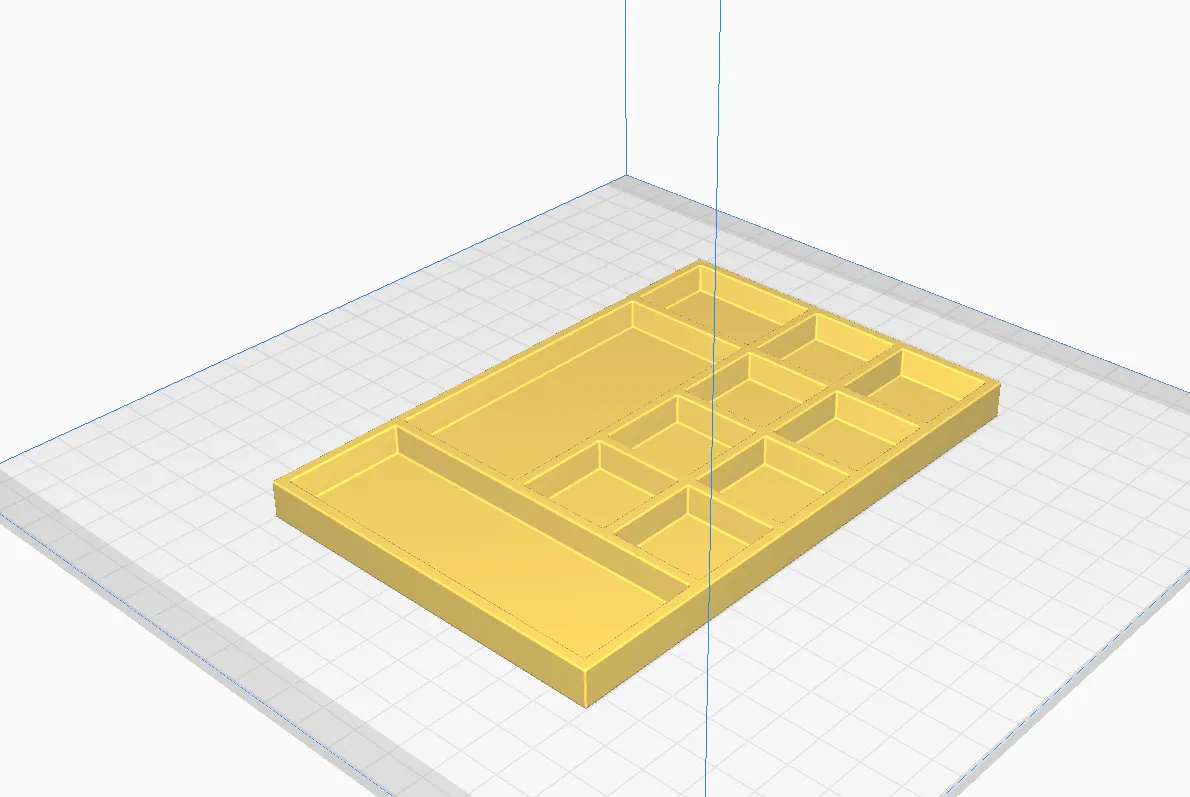 Khay sắp xếp kích thước 10 x 15 cm, thích hợp để chứa các vật dụng nhỏ, đồ dùng học tập, hoặc dụng cụ sửa chữa. Thiết kế đơn giản, dễ in ấn với vật liệu PLA.