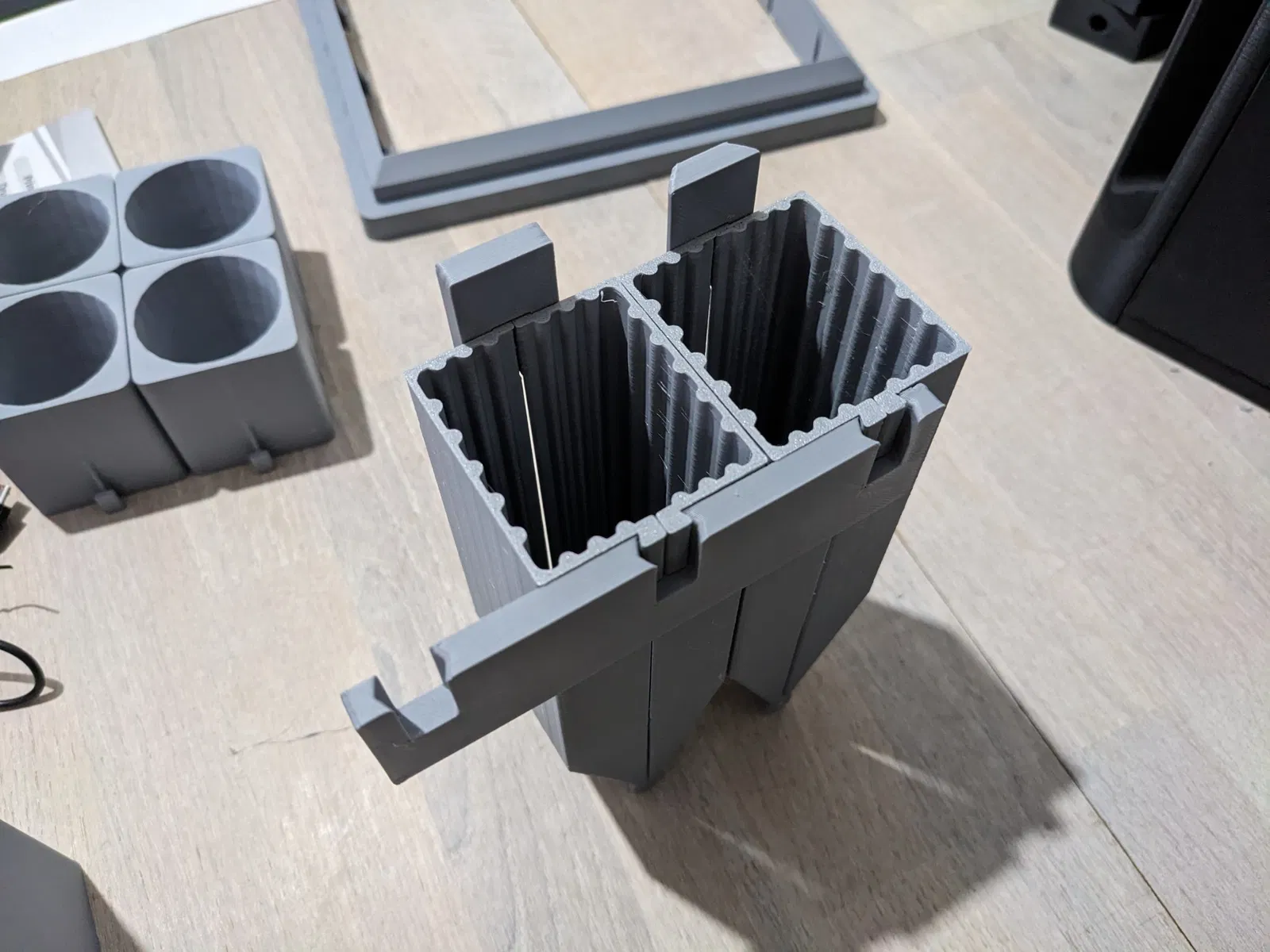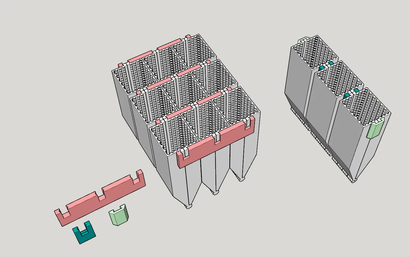 In 3 cái khay ươm rễ và 2 cái kẹp bên, cái này sẽ tạo thành một cái đế 1x3 vững chắc, in thêm 3 cái khay nữa cho đế 2x3, cứ lặp lại để tạo số lượng bạn muốn.
