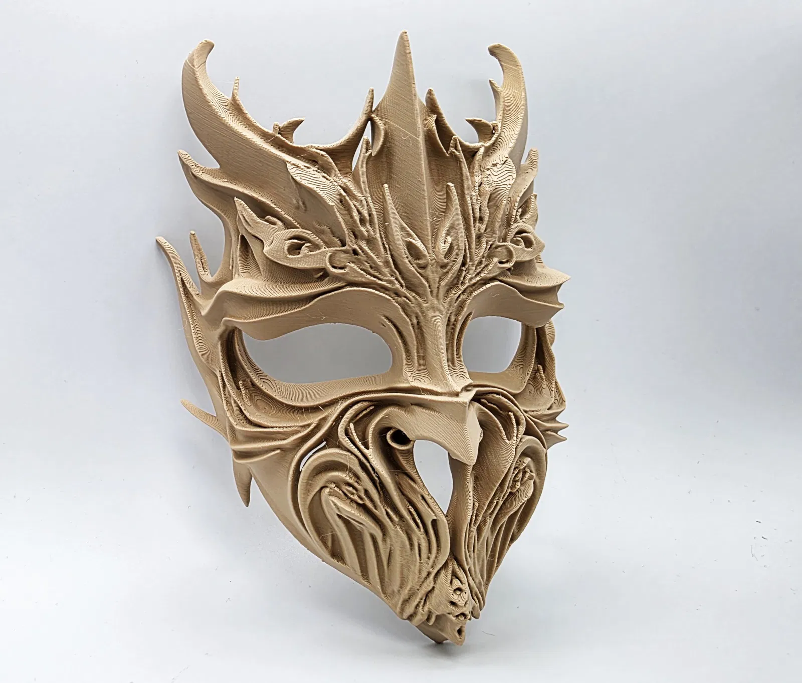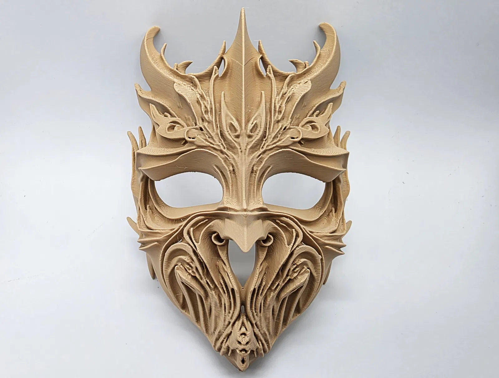 Chiếc mặt nạ ma thuật cổ xưa, chạm khắc tinh xảo từ gỗ quý. Thoải mái tùy chỉnh kích thước cho vừa vặn. Yêu cầu support khi in. Bạn có thể tự tạo lỗ đục theo ý thích. Phù hợp để trưng bày, cosplay, hoặc làm vật phẩm trang trí độc đáo.