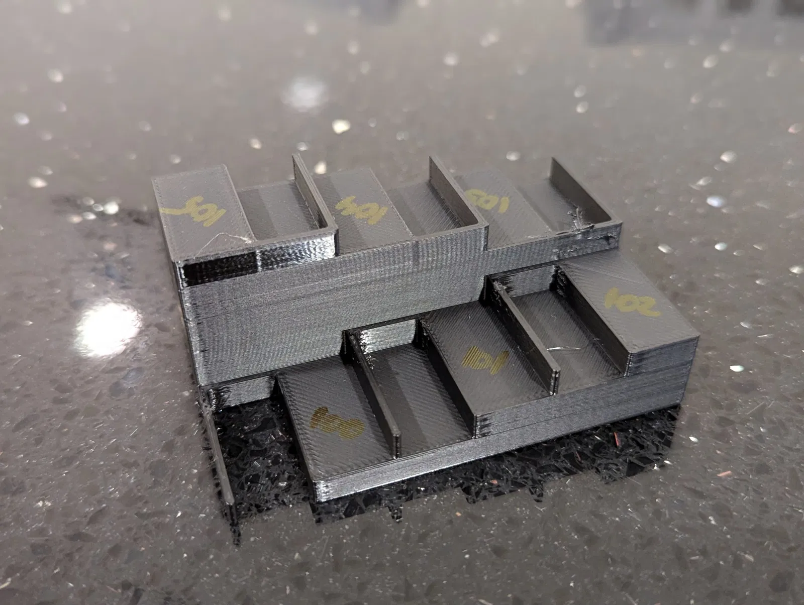 Bản in kiểm tra đa cấp này được thiết kế để giúp bạn tinh chỉnh cài đặt bộ nhân đùn (extrusion multiplier) để có được kết quả đùn sợi nhựa chính xác nhất. Mỗi cấp độ có một khu vực kiểm tra trực quan để đánh giá chất lượng bề mặt và một khu vực kiểm tra độ chính xác kích thước để đo lường.