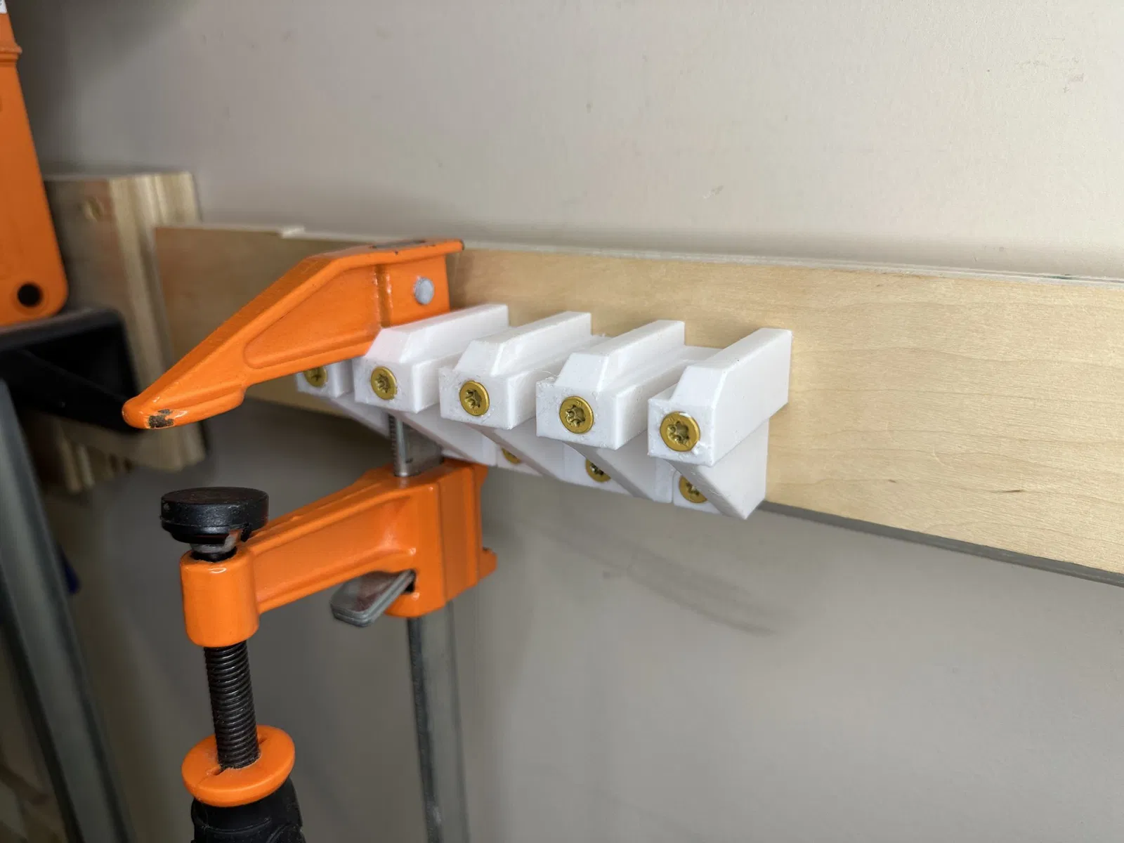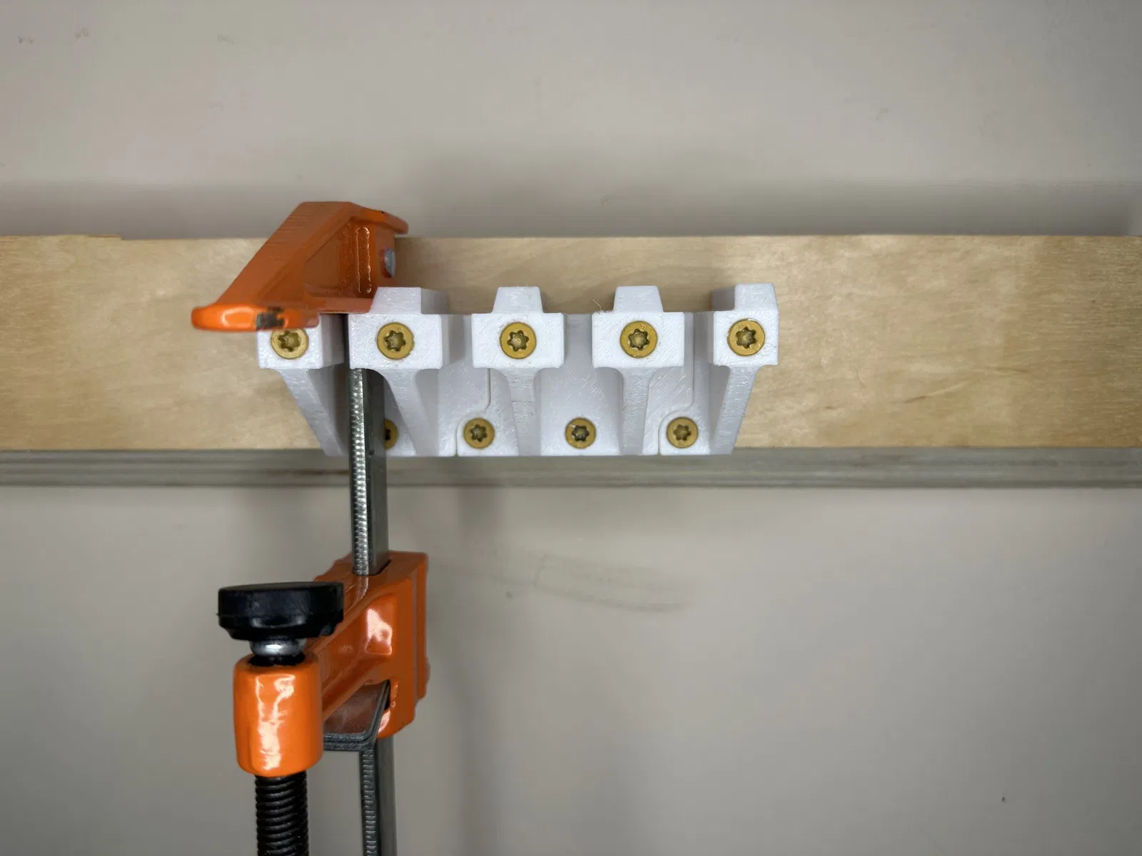 Giá đỡ treo tường cho 4+ kẹp f kiểu Jorgensen. Phiên bản 2 được chia thành 3 phần: Trái, Giữa, Phải. Có bề mặt ghép nối để dễ dàng căn chỉnh và mở rộng theo ý muốn. Tuyệt vời cho xưởng mộc của bạn!