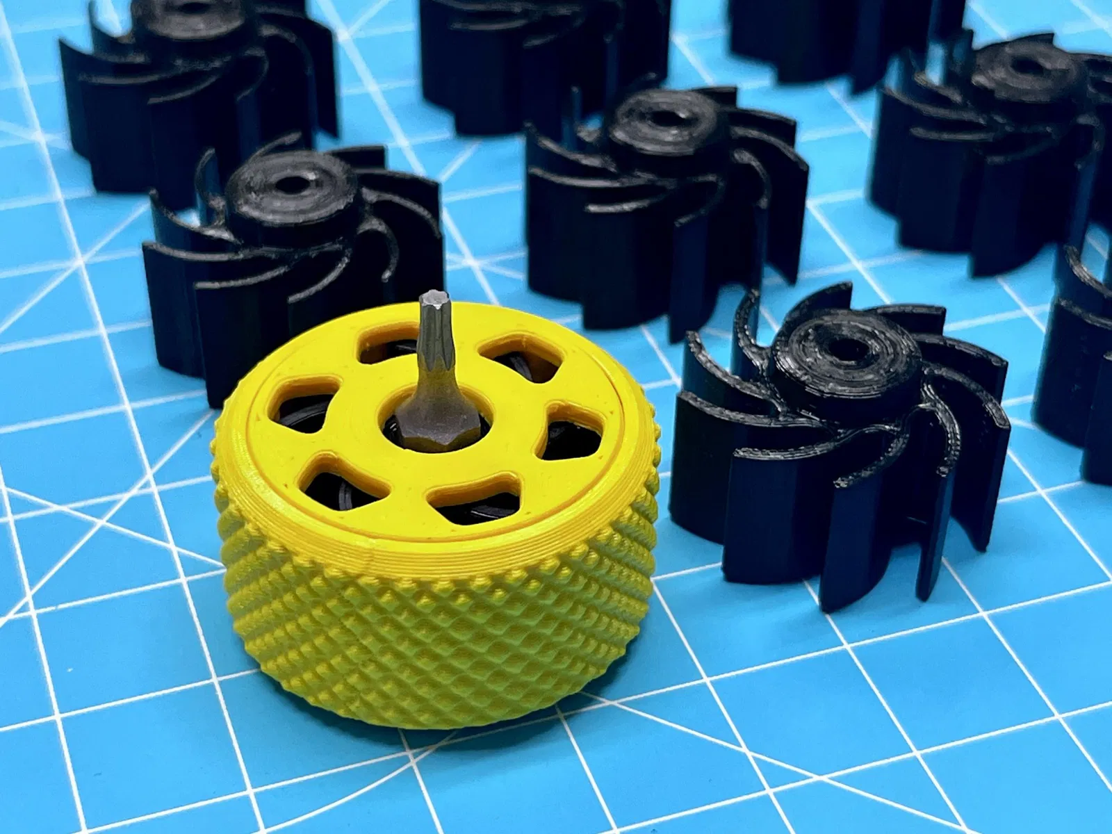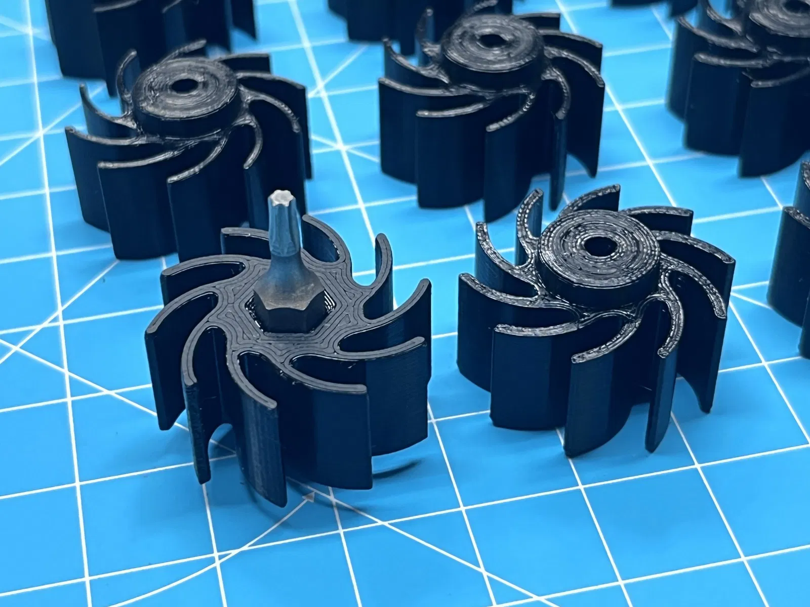 Trước khi in hết mấy cái insert, bạn nên in thử một cái để kiểm tra xem nó có vừa không. Nếu bạn không nhét được cái 1/4" hex bit vào, bạn nên giảm flow. Nếu nó bị lỏng quá, bạn nên tăng flow. Tốt nhất là nên làm flow test trước nha.