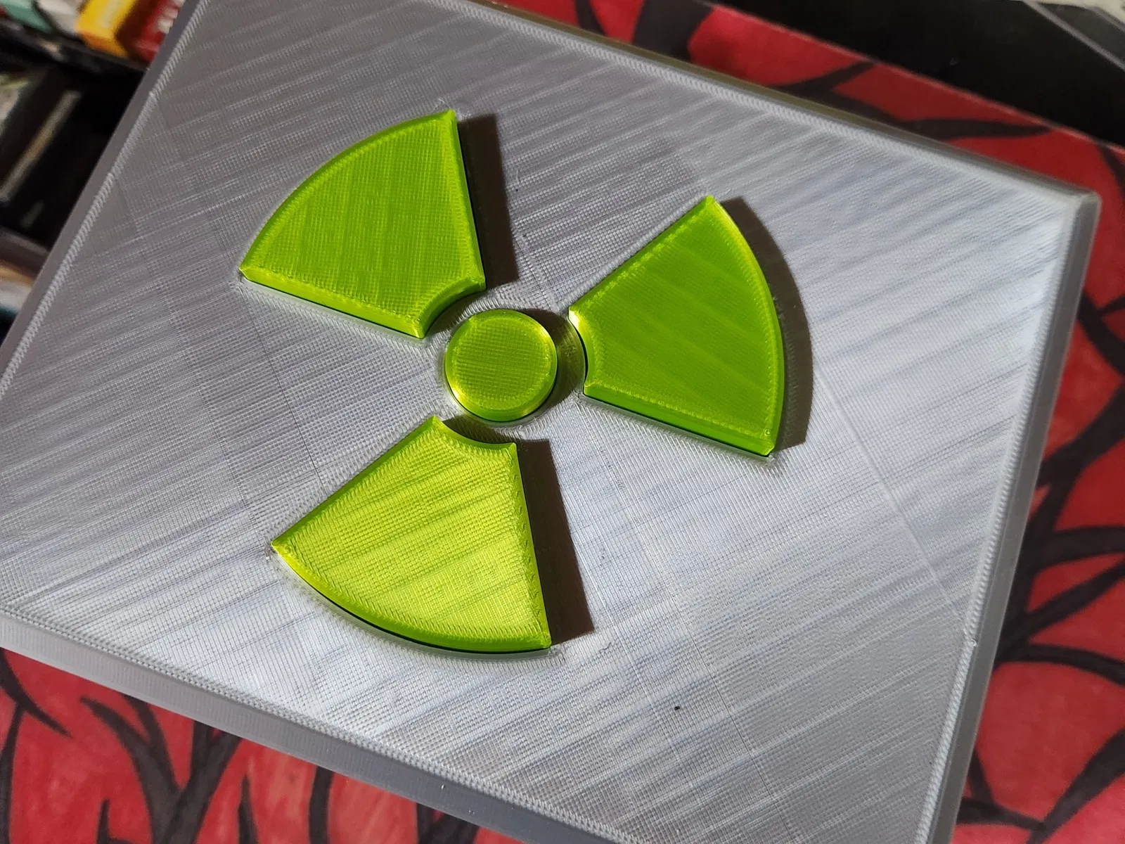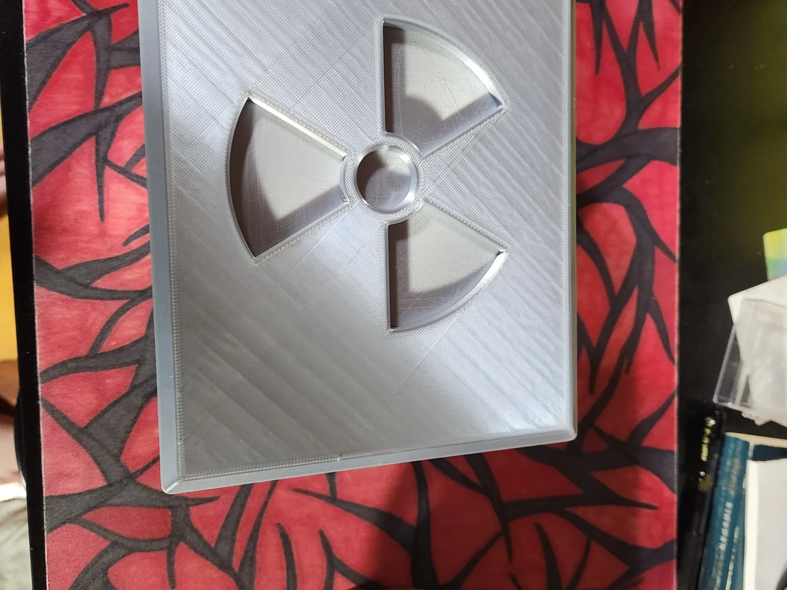 Biểu tượng phóng xạ trên nắp được thiết kế để in riêng, bạn sẽ cần 3 mảnh ghép cho phần thân hộp, và khuyến khích bạn nên chỉnh scale các mảnh ghép đó xuống một chút (khoảng 98% là vừa đẹp với mình) để chúng khớp vào nắp hộp dễ dàng hơn.