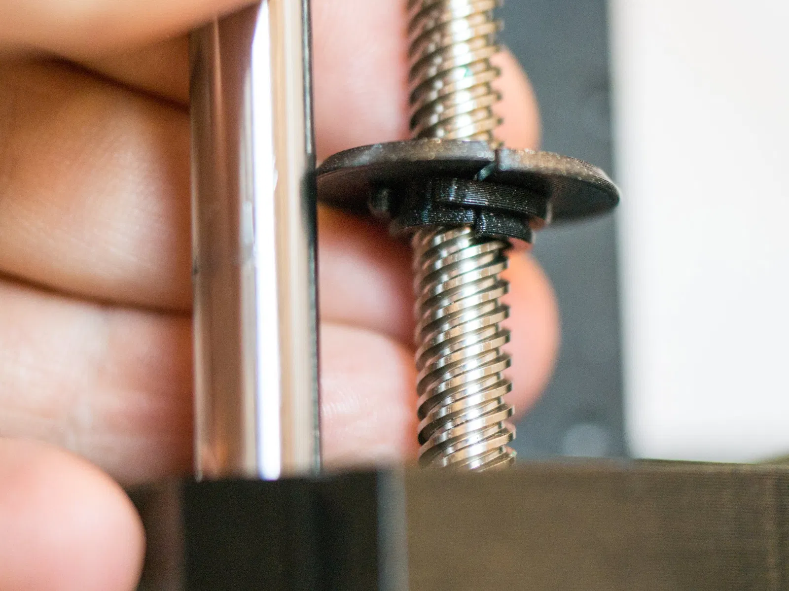 Cũng có nhiều giải pháp khác nhau để ngăn bụi hoặc các mảnh nhựa nhỏ rơi vào lỗ trên trục Z rồi. Tuy nhiên, chưa có cái nào làm tôi thấy ưng ý cho đến giờ, nên tôi đã tự phát triển giải pháp của riêng mình. Trong lúc thiết kế đầu tiên đang được in, tôi đã đi tập gym và nảy ra thêm hai giải pháp khả thi nữa, và tôi đã nhanh chóng hoàn thiện chúng ngay sau đó.