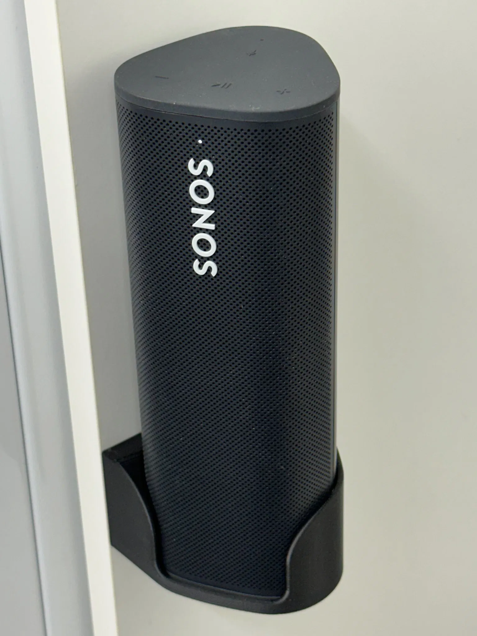 Giá treo tường dọc cho loa Sonos Roam, được thiết kế riêng để gắn ở góc cabin. Bản thiết kế bao gồm mô hình loa, giá đỡ và khuôn khoan đi kèm, giúp việc lắp đặt dễ dàng hơn.