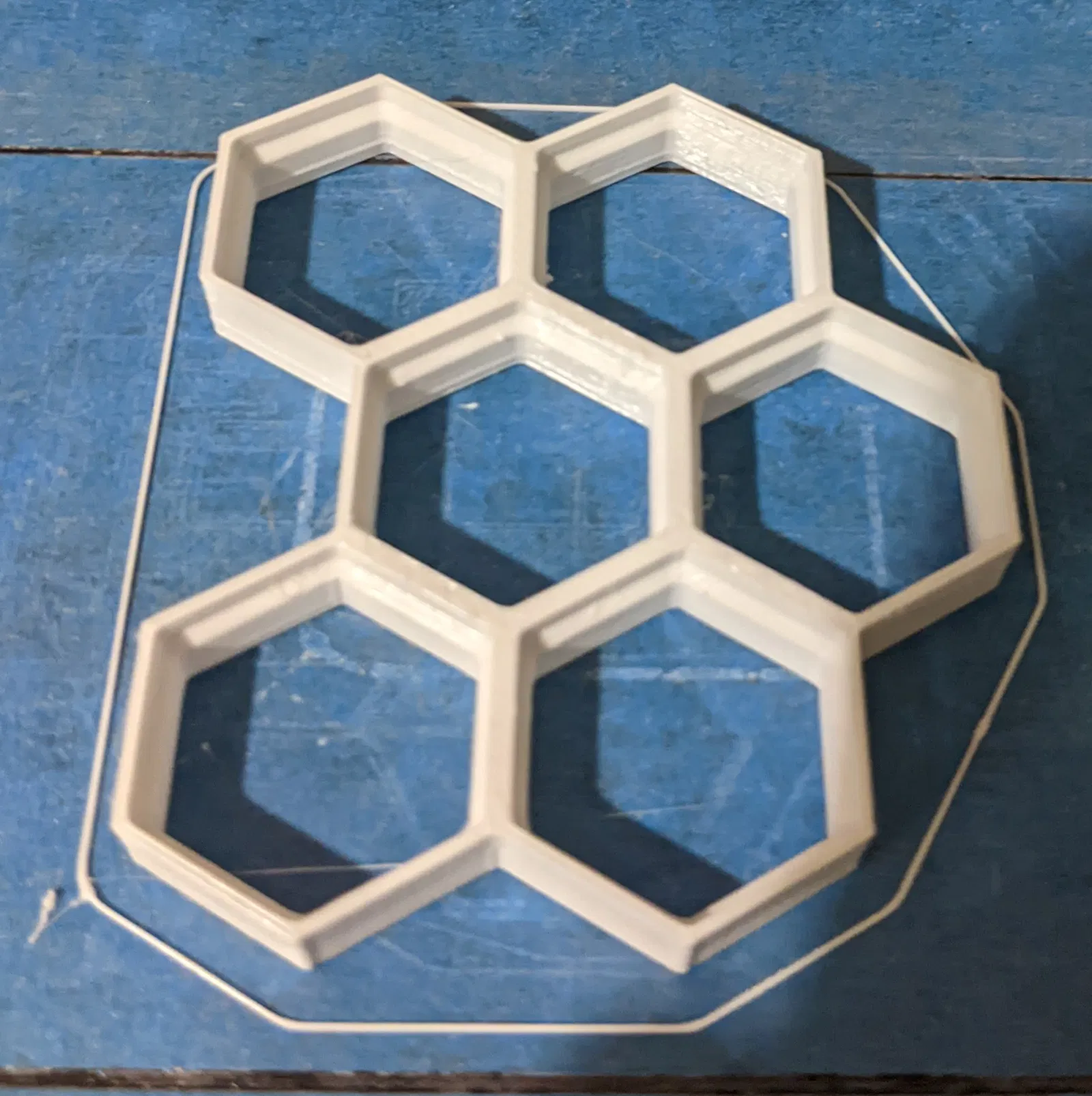 Nó không hoàn toàn rõ ràng nhưng bạn thực sự muốn gắn nó sao cho mặt hướng về bàn in, mặt mà các hình lục giác dày nhất, hướng về phía bạn. Đó là mặt mà các bộ phận chèn được thiết kế để lắp vào.