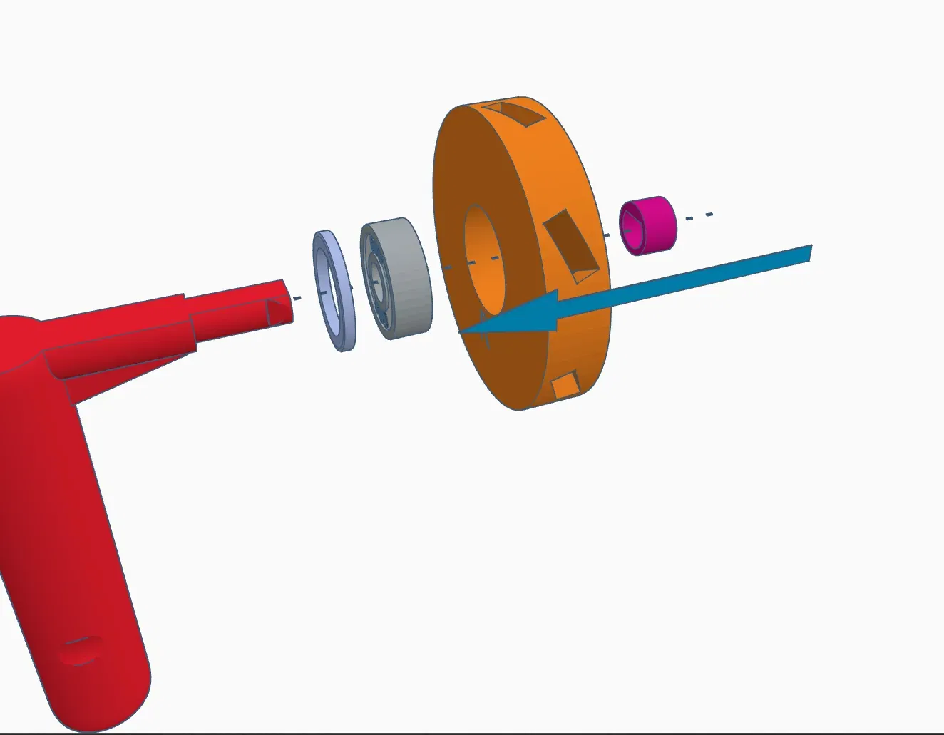 - Ép vòng bi 608 vào giữa mỗi trục quay.