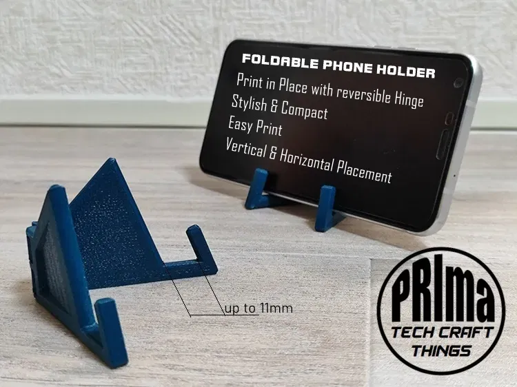Kẹp điện thoại nhỏ gọn, chắc chắn, in ra là xài được liền với bản lề xoay. Kẹp được điện thoại dày 11mm, không cần support, in lớp 0.2mm. Chất liệu PETG được khuyên dùng.