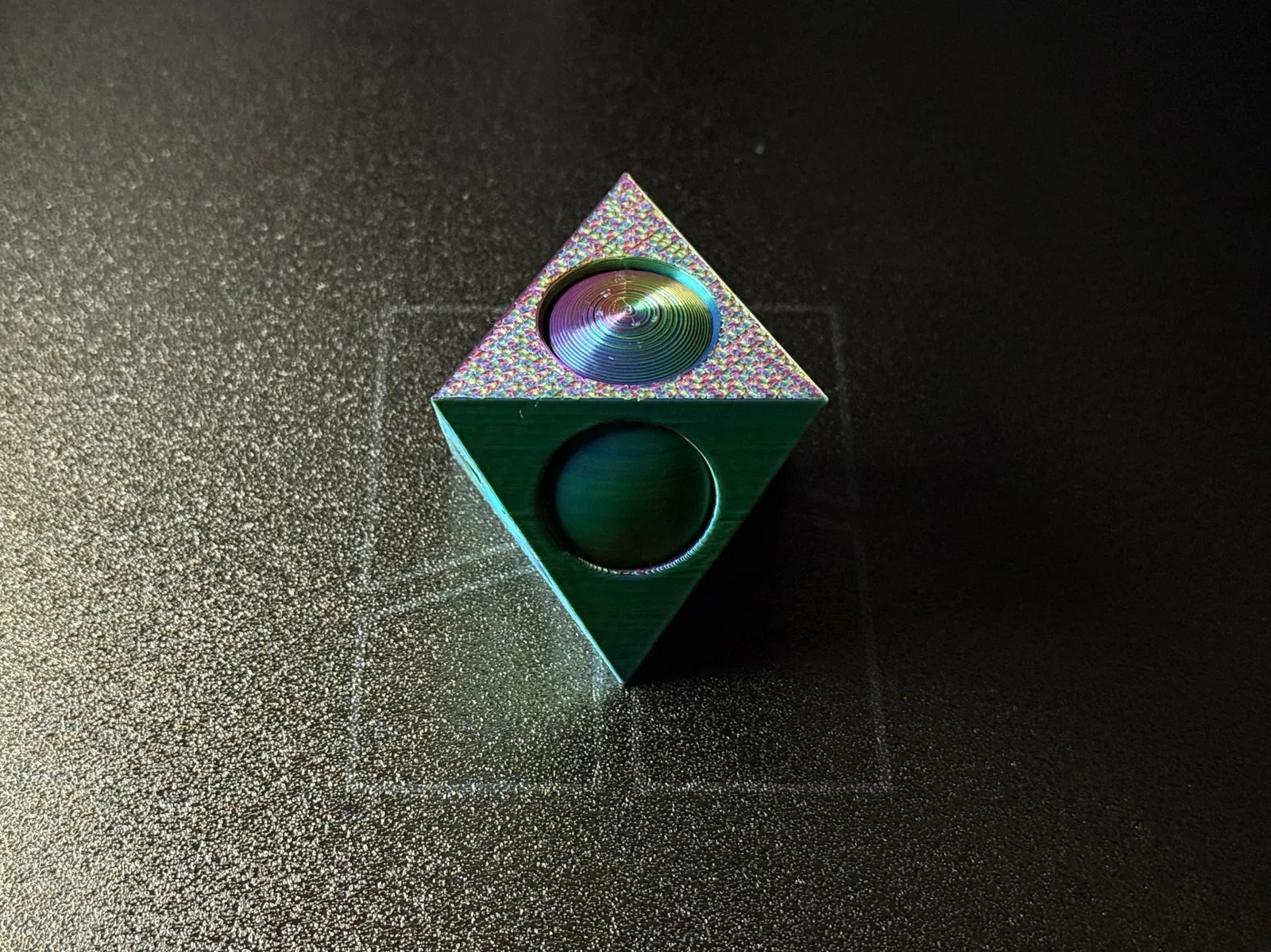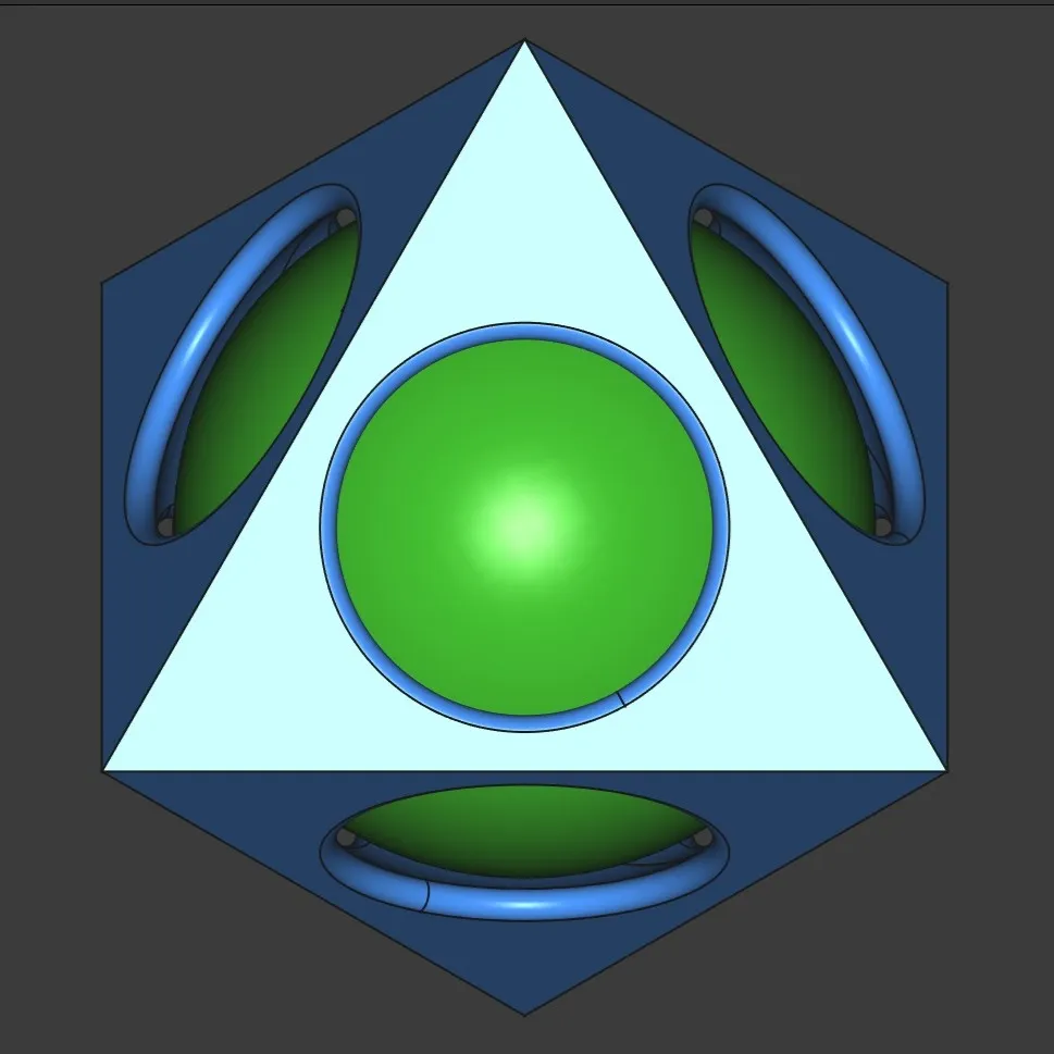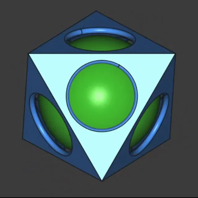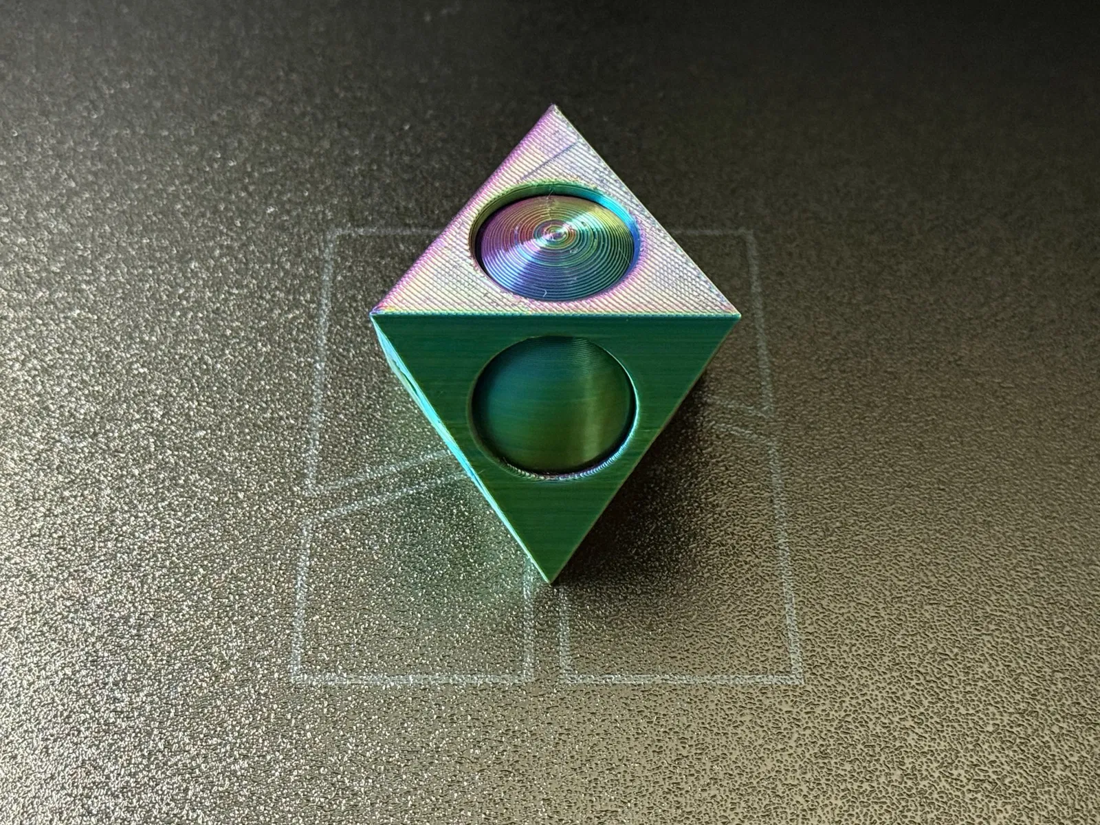 Một quả cầu quay tự do bên trong khung bát diện có cửa sổ. Một món đồ chơi lăn hoặc fidget thú vị có thể in ngay tại chỗ!