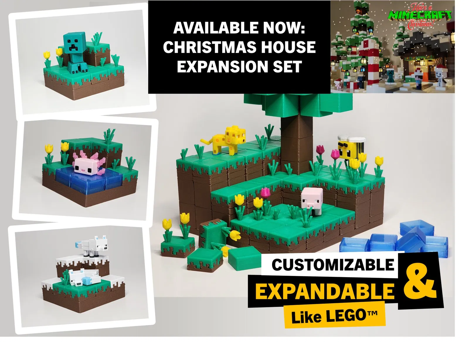 LỊCH SỬ SỬA ĐỔI 2023-08-20: Cập nhật máy phát điện lưới (v1.02) với các tùy chọn bổ sung cho việc tạo ra các tấm và thêm khối quặng (B(1 - ore.stl). 2023-08-19: Cập nhật máy phát điện lưới (v1.01) và các tấm để thêm 0.2 khoảng trống giữa các chốt để dễ dàng đặt các khối. Vui lòng tải lại máy phát điện các bộ phận, khối và tấm. ____________ Bộ mở rộng Nhà Giáng Sinh hiện có sẵn! In của bạn ngay bây giờ! Đây là một bộ mô hình khối xây dựng cho phép tạo ra các nền tùy chỉnh hoặc diorama với chủ đề Minecraft. Nó đi kèm với một chương trình tùy chỉnh để tạo ra các lưới của riêng bạn với kích thước khác nhau. Các khối là rỗng và sử dụng một lượng nhỏ filament chỉ đủ để làm cho các khối cứng cáp. Xây dựng các nền tùy chỉnh của riêng bạn cho bộ mô hình nhân vật mini Minecraft!