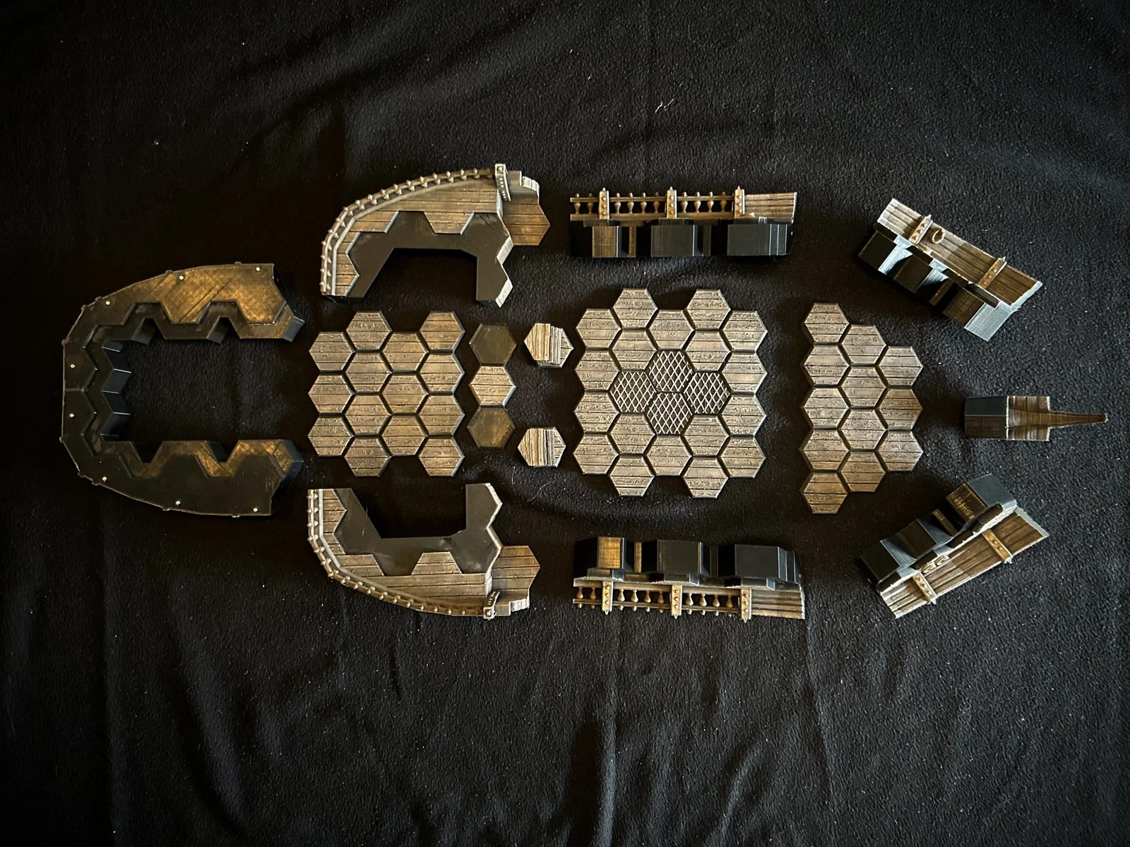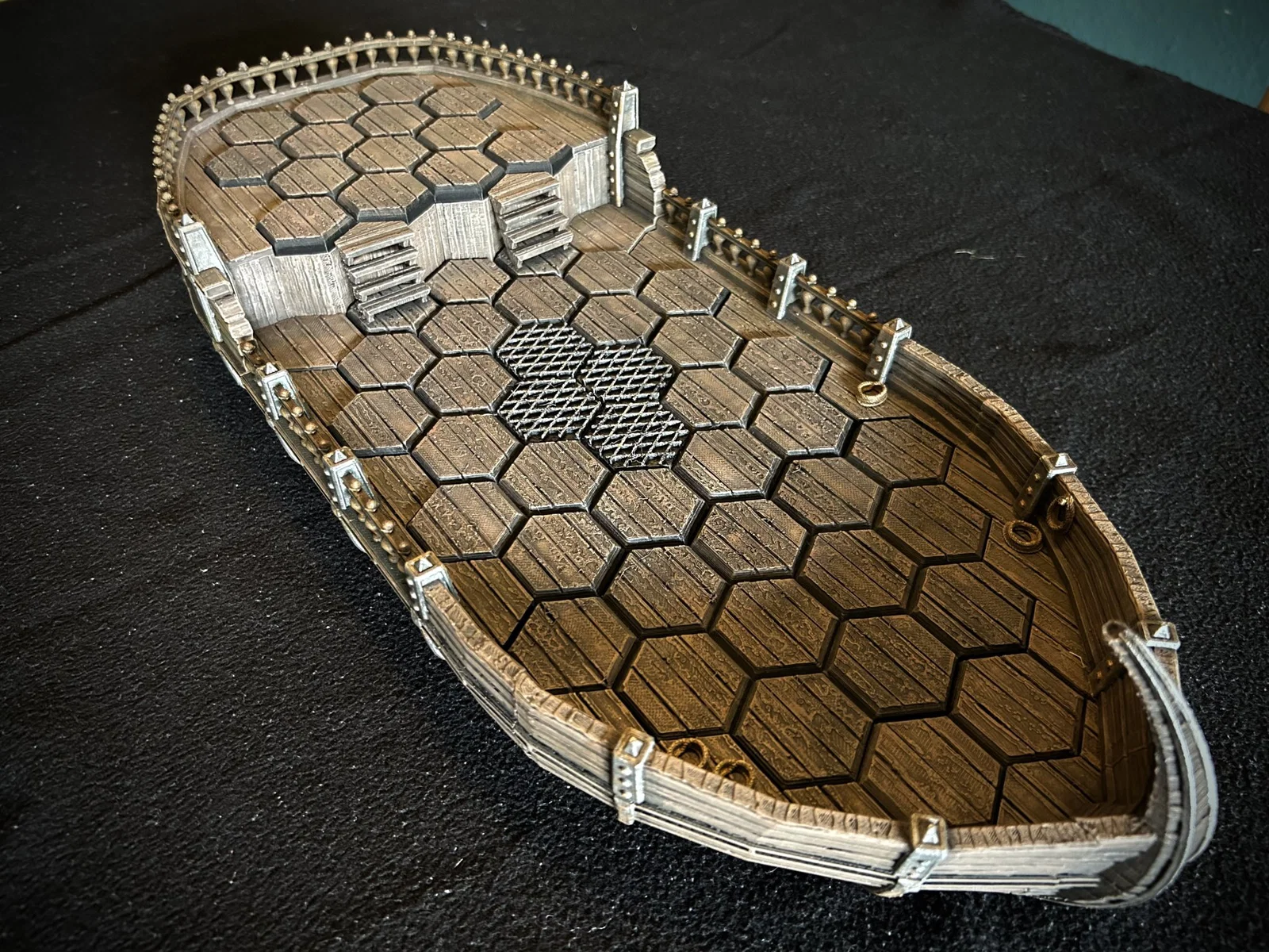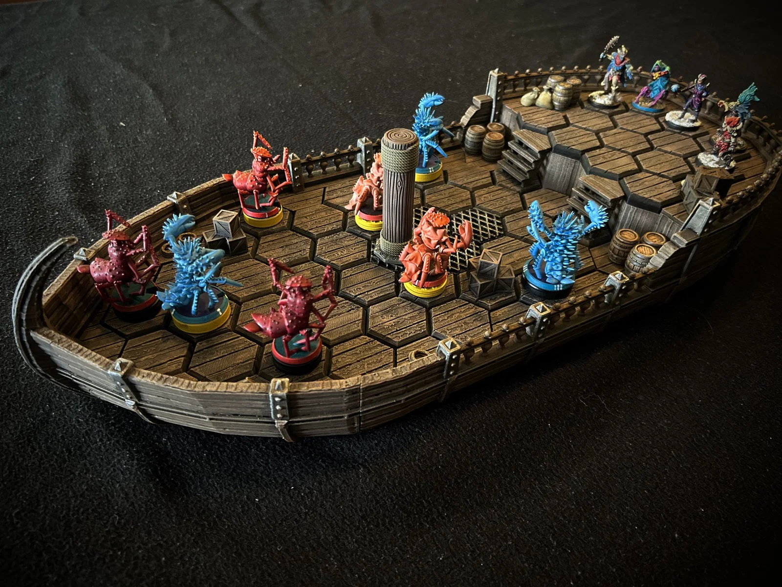 Cảnh quan thuyền mô-đun cho Frosthaven. Chia thành phần trước và phần sau. Cuối cùng sẽ được mở rộng với nhiều tài sản hơn để kết hợp với hệ thống MagHex.