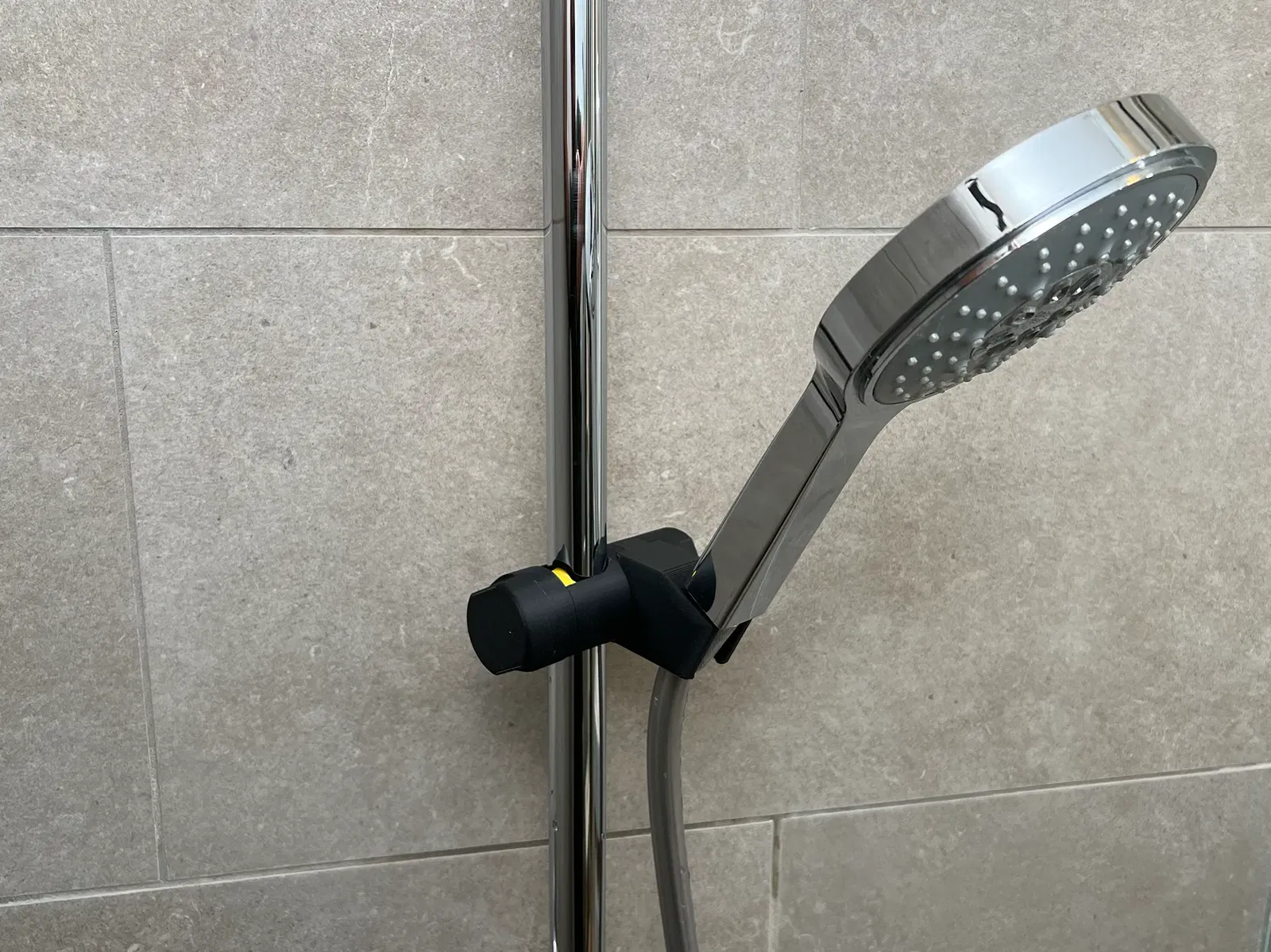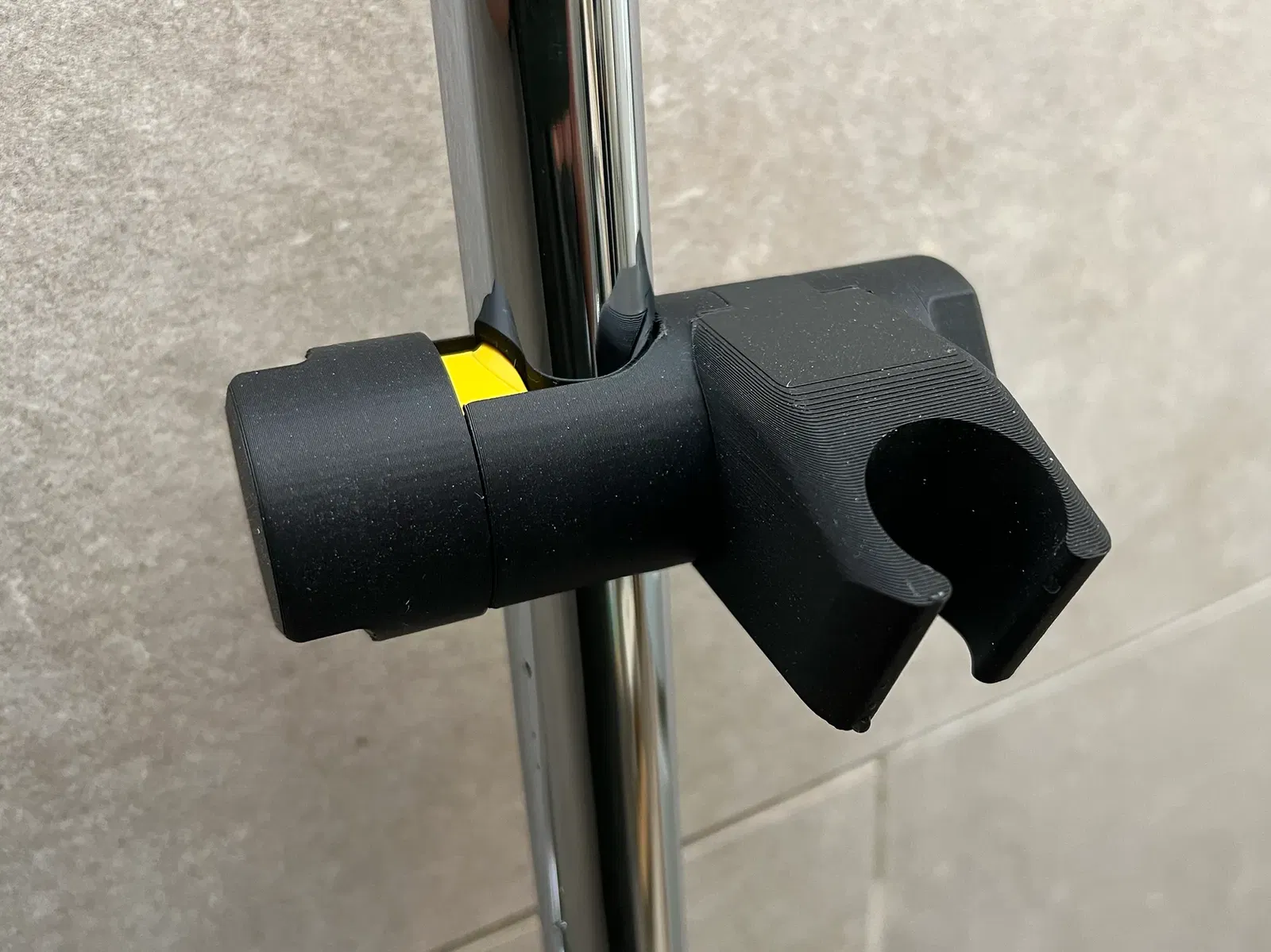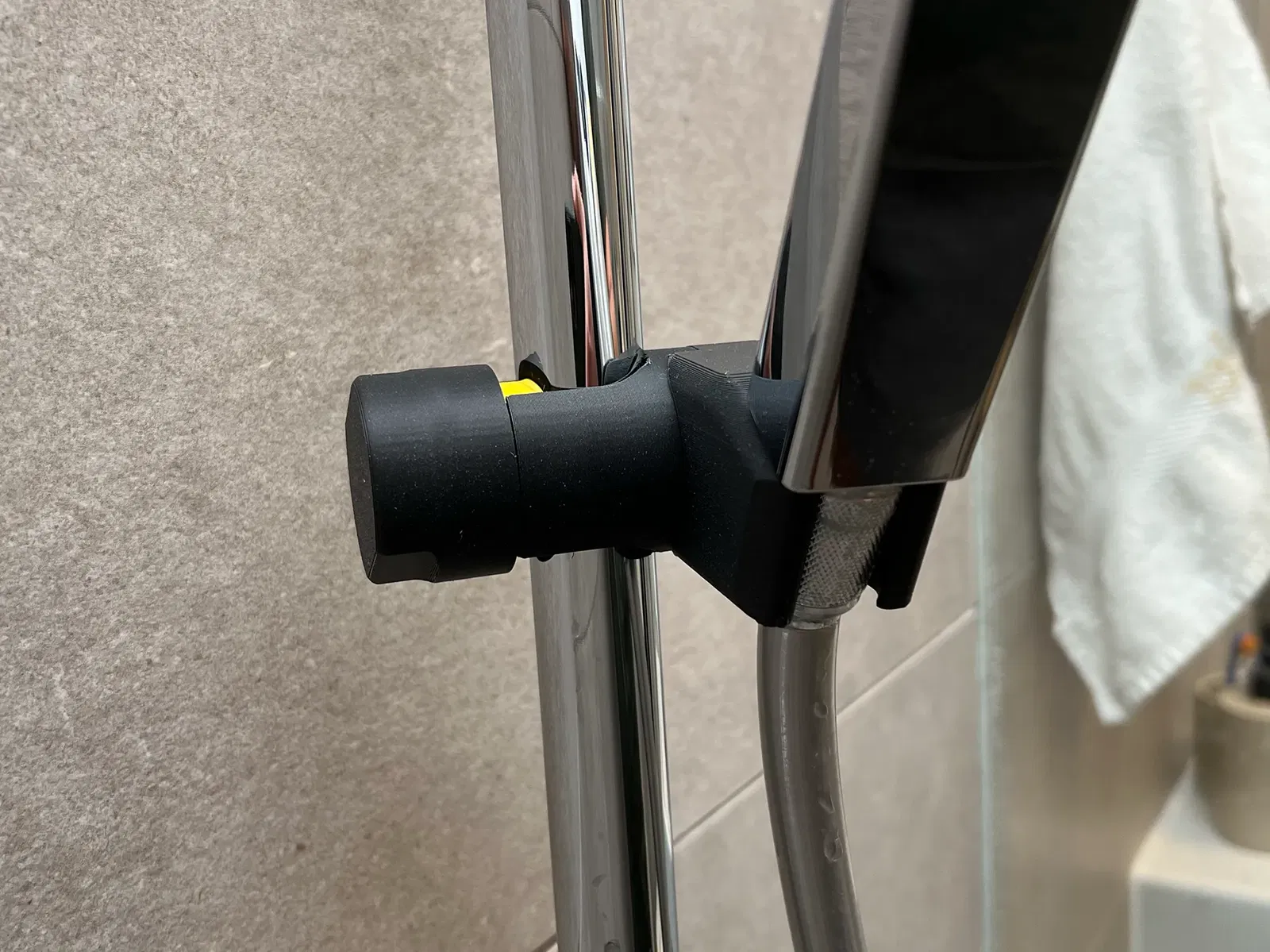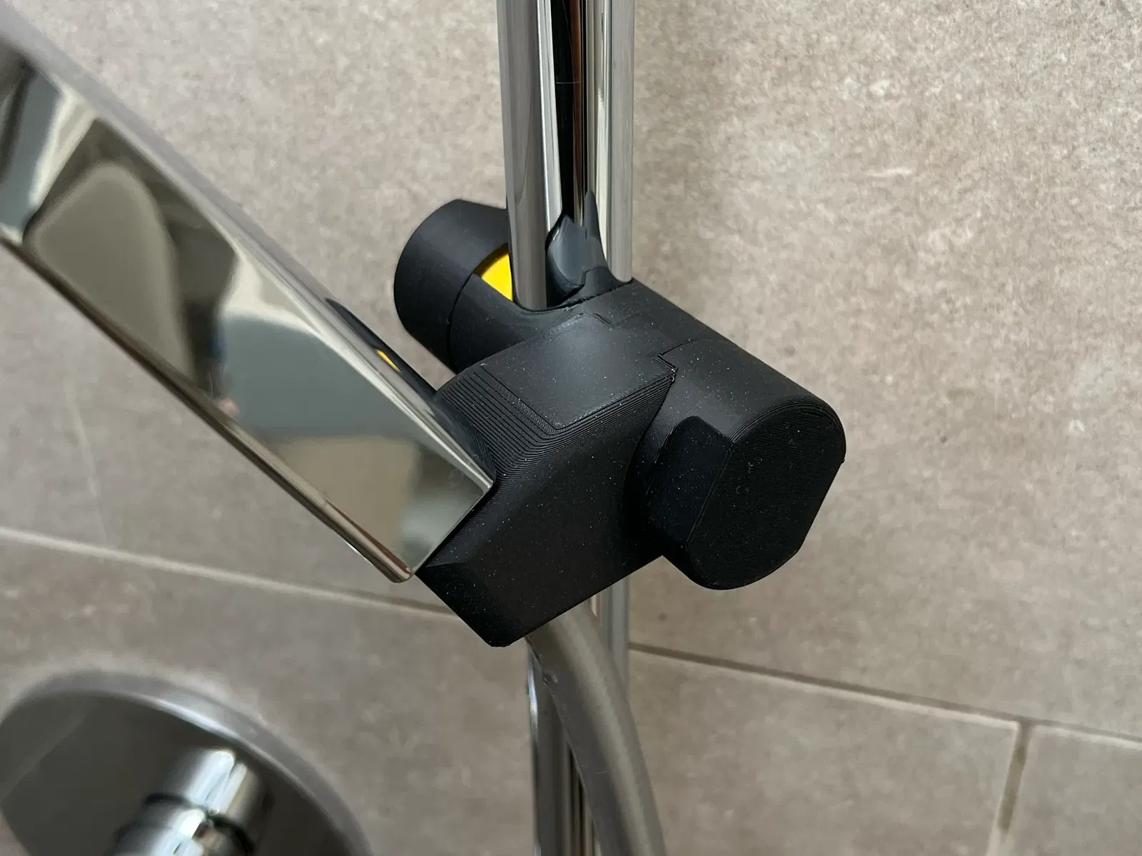 Các mảnh ghép đơn giản vặn vào nhau, giống như một giá đỡ vòi hoa sen thông thường. Phần được làm nổi bật trong bản render dưới đây có tác dụng tạo lực ma sát cho thanh vòi hoa sen.