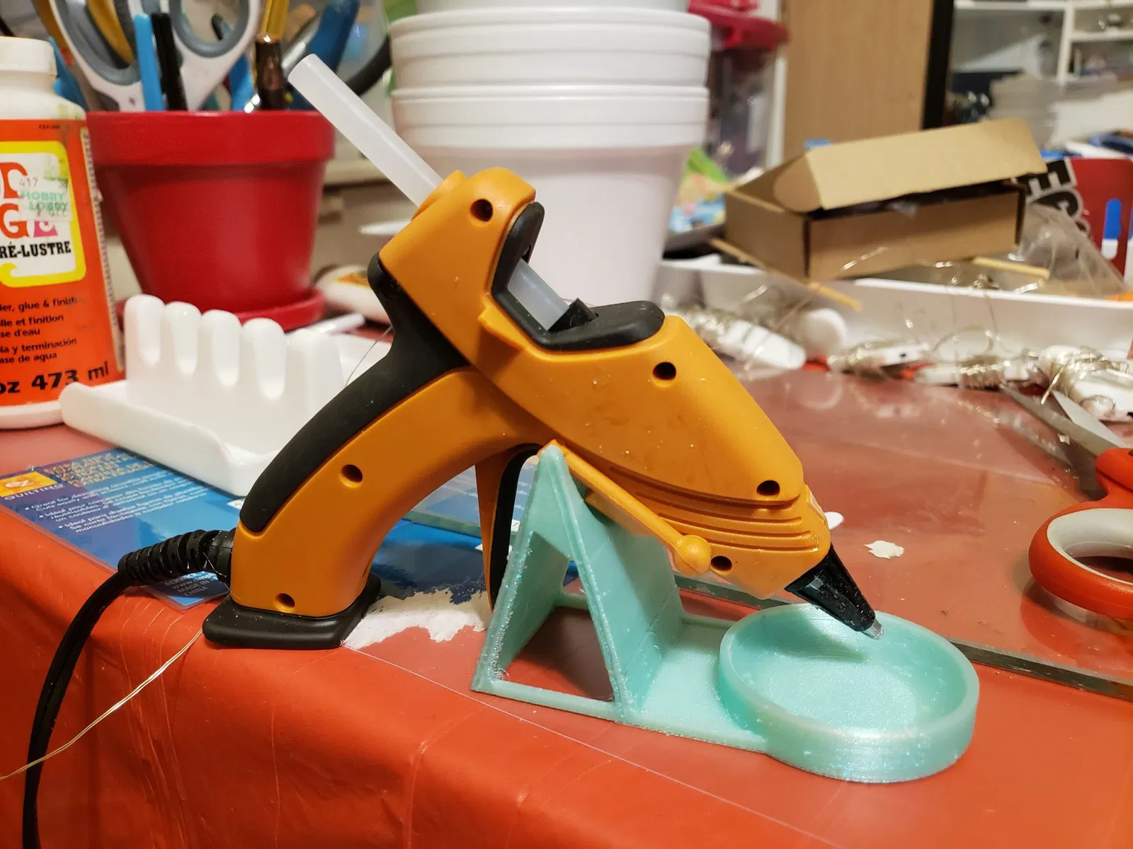 Một giá đỡ nhỏ được làm để hứng các giọt keo nóng chảy từ súng bắn keo.