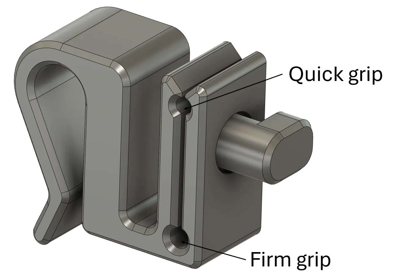 Tôi đã tìm kiếm một kẹp/clip nhả nhanh cho filament mà sẽ đáp ứng nhu cầu của tôi, nhưng tôi không thể tìm thấy cái nào tôi thích, vì vậy tôi đã tạo ra một cái kẹp ba chiều đa năng. Tôi không thích cách mà filament không sử dụng được giữ trên giá cuộn của MK4 của tôi, vì nó yêu cầu phải uốn cong quá mức. Vì vậy, tôi muốn một cái kẹp đơn giản để giữ filament ở vị trí mà không cần sử dụng lỗ nhỏ trên giá. Để lấy và thả filament, chỉ cần nhấn nút.