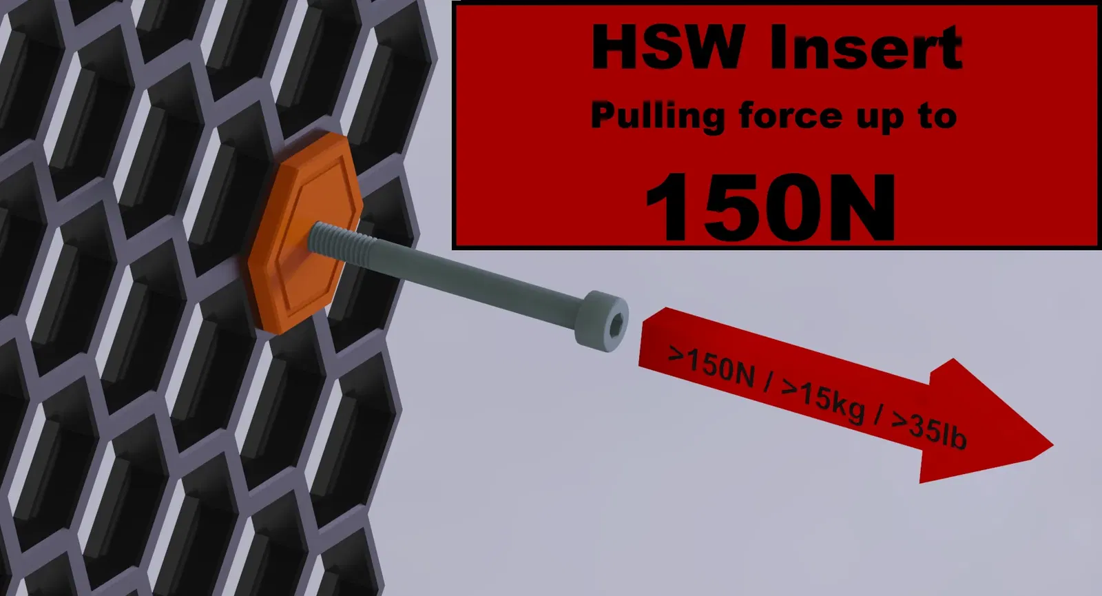 Treo thiết bị nặng trên Tường Lưu Trữ Honeycomb của bạn với các bộ chèn này. Bộ chèn có thể chịu được lực lên đến 15 kg và không bị tách ra khỏi HSW.