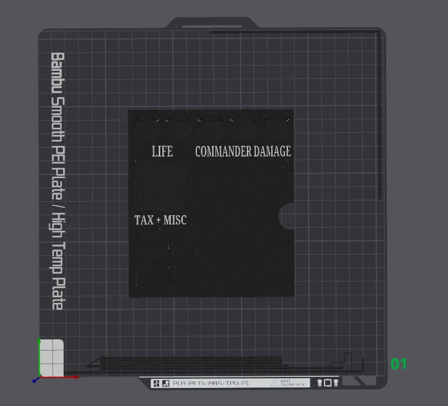 - 1x bộ đếm mạng sống Không gian bộ đếm mạng sống được làm riêng cho bộ đếm mạng sống in ấn này (phiên bản 2 bánh xe): https://www.thingiverse.com/thing:4967362. Hãy kiểm tra trang Dự Án In 3D MTG của tôi nếu bạn quan tâm đến nhiều bản in MTG hơn như thế này từ tôi và những nhà sáng tạo rất tài năng khác! Có một tệp .3mf kèm theo cho bất kỳ ai sở hữu Bambu Lab để tải lên và in với tất cả các cài đặt đã được cấu hình!