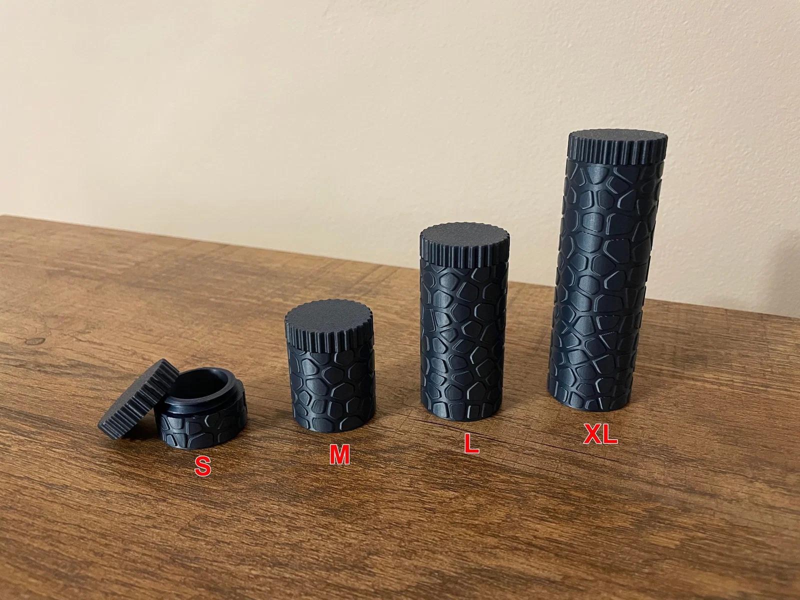 Các hộp chứa được thiết kế để in dưới dạng một mảnh duy nhất với nắp vặn. Đảm bảo rằng các ren của nắp và hộp chứa sạch sẽ sau khi in để hoạt động trơn tru.