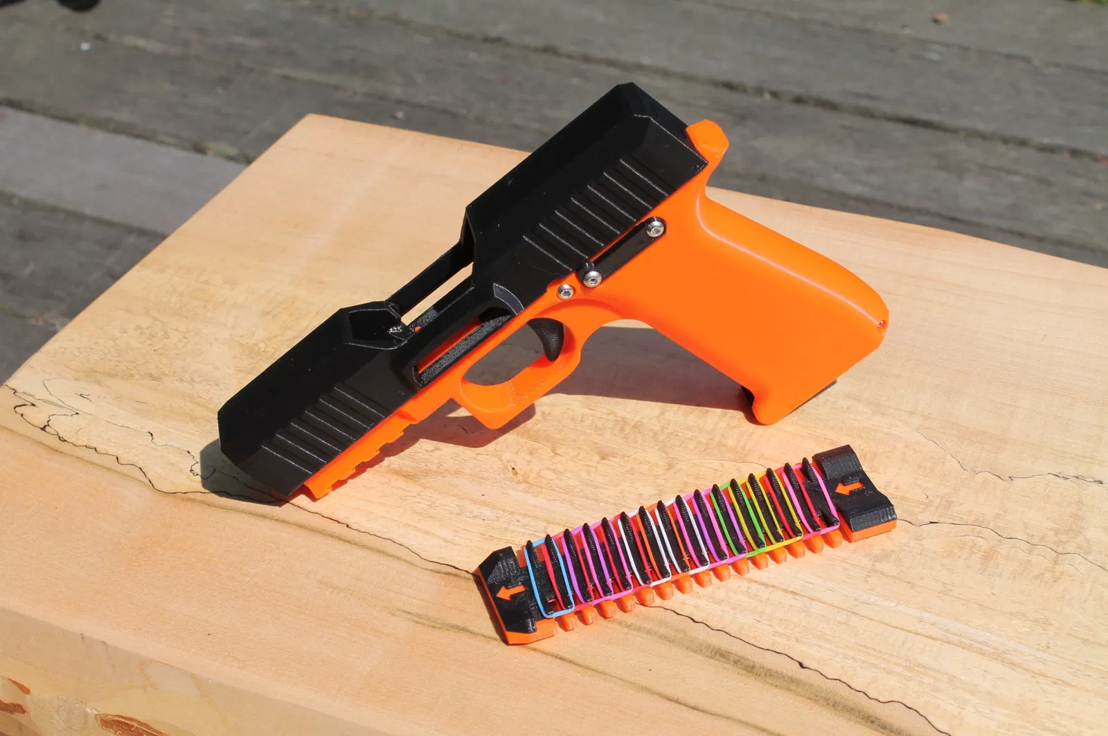 ***PHIÊN BẢN CŨ*** ##### Tìm mô hình mới tại đây: Đây là bản cập nhật cho Súng cao su Mini Mag Fed. Tôi đã thiết kế lại bốn phần để ngăn chặn móc sau bị kẹt khi kéo trở lại thanh trượt. Các phần đã thay đổi là Tay cầm, Chèn, Cò và Móc sau. Tất cả các phần khác đều tương thích chéo. Đây là video lắp ráp cho phiên bản cũ.