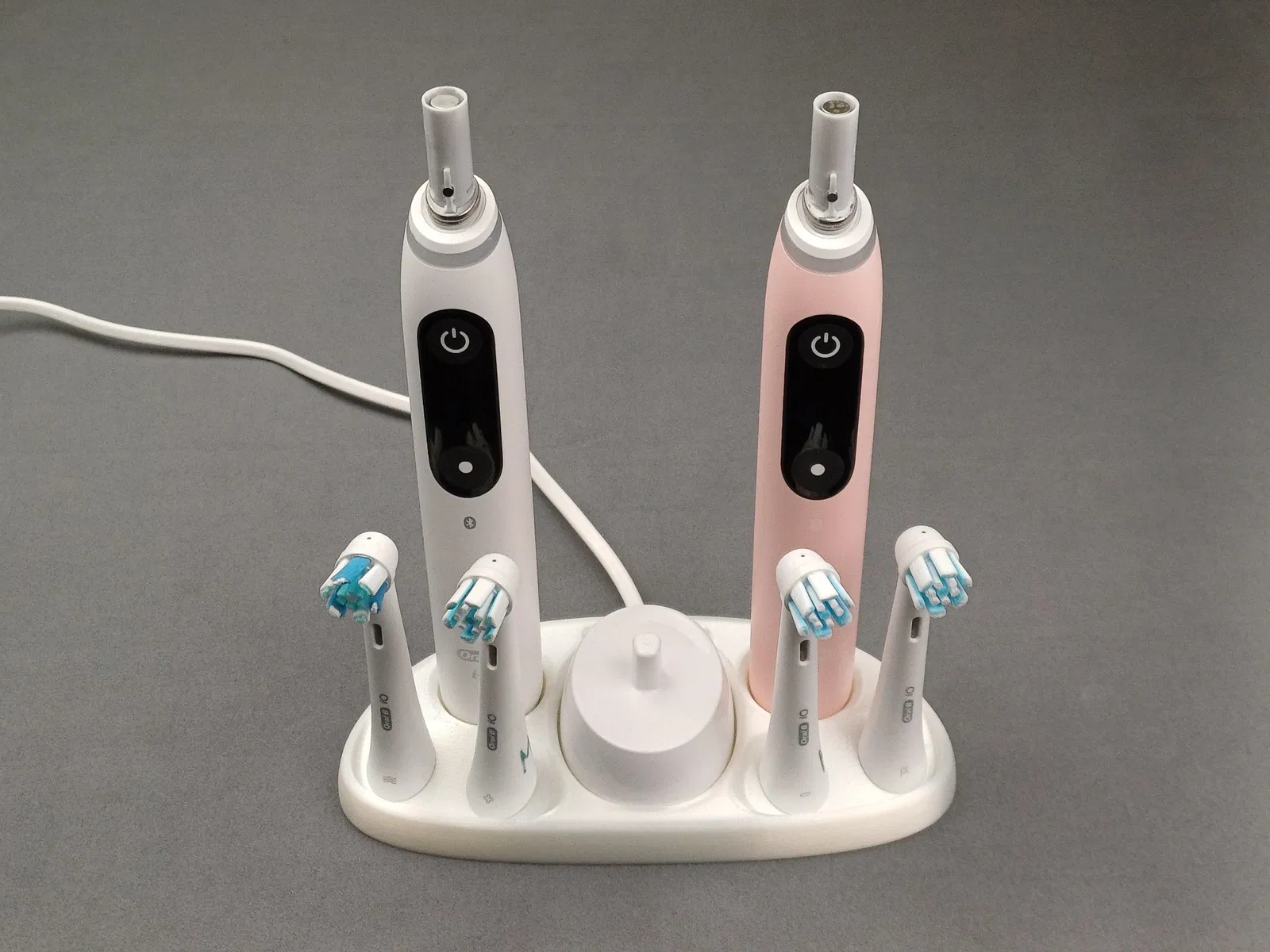 Oral-B đứng cho 1 bộ sạc, 2 bàn chải đánh răng và 4 đầu bàn chải. Cũng có phiên bản cải tiến của mẫu này: <> #### In ấn: In ấn rất dễ dàng (không cần hỗ trợ). Tôi đã in cái này bằng PLA, 0.2mm lớp, 3 viền và 15% độ đặc.