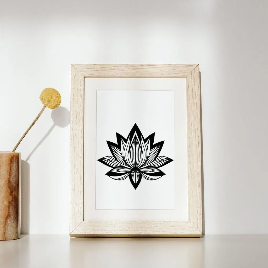 Trang trí tường hoặc bàn với tranh hoa sen tối giản