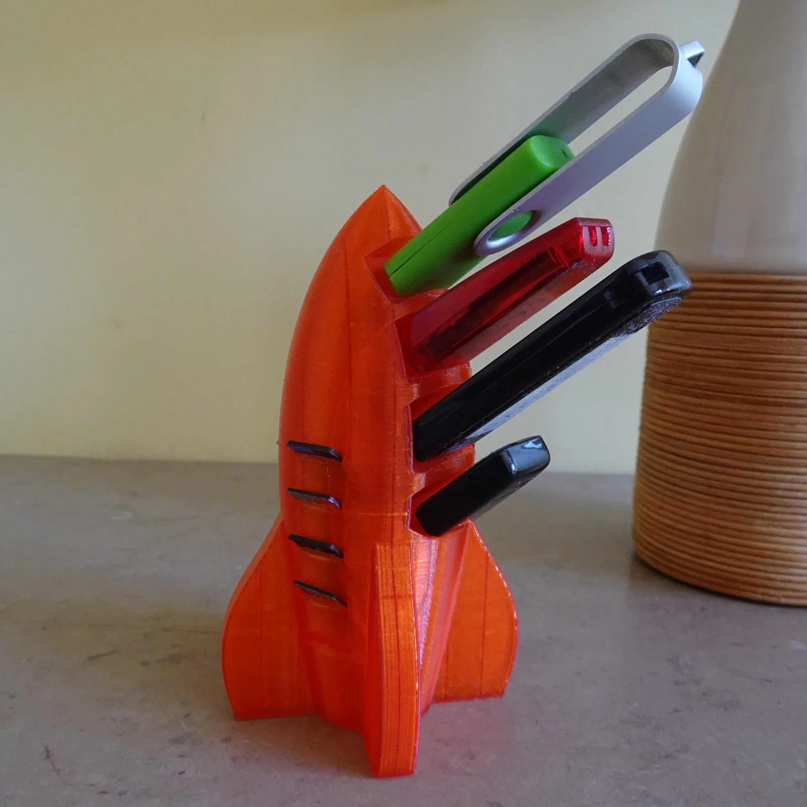 Chán cảnh USB, thẻ nhớ micro SD bừa bộn? Giá đỡ USB hình tên lửa siêu cute này sẽ giúp bạn sắp xếp gọn gàng. Có thể chứa tới 7 USB và 10 thẻ nhớ micro SD. In bằng PLA, file STL, thời gian in khoảng 4 tiếng. Sản phẩm được in bằng máy Creality Ender 3.