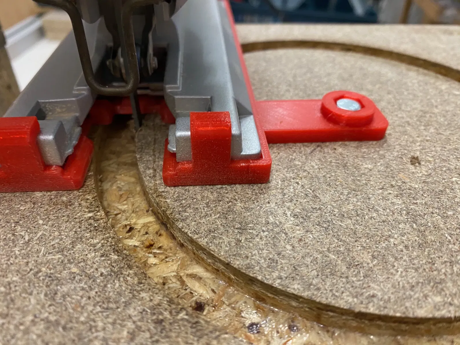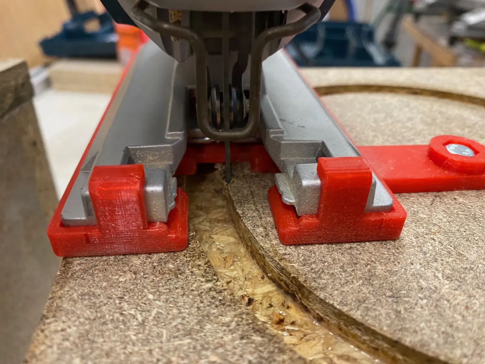 Đã làm cho cắt lỗ chính cho loa siêu trầm 8 inch với một Bosch GST 150 CE
