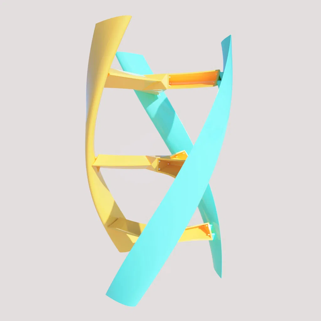 VAWT này bao gồm bốn bộ phận dễ dàng in 3D. Thiết kế mô-đun này mang lại hai lợi thế. Khả năng in các bộ phận riêng lẻ có nghĩa là nó dễ tiếp cận hơn với các máy in có thể tích xây dựng nhỏ hơn. Ngoài ra, tua-bin có thể được xếp chồng lên bất kỳ chiều cao nào mà không ảnh hưởng đến tính toàn vẹn cấu trúc của nó. Về bản chất, tua-bin này bao gồm hai loại tua-bin gió trục dọc. Một tua-bin Darrieus hình xoắn ốc và một tua-bin kiểu Savonius.