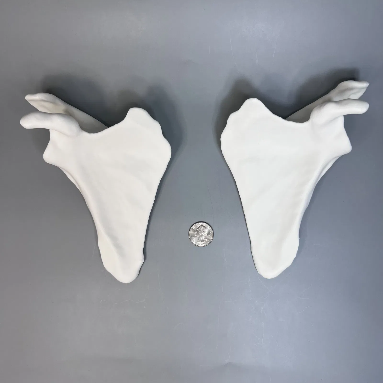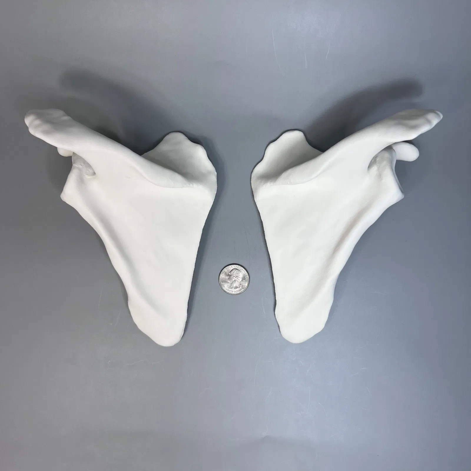 Mô hình xương bả vai trái và phải của nam 18 tuổi, được quét CT, có kích thước thật. Phù hợp để giảng dạy phân biệt trái/phải trong nhân chủng học pháp y và khảo cổ học sinh học, cũng như thu thập số liệu đo xương.