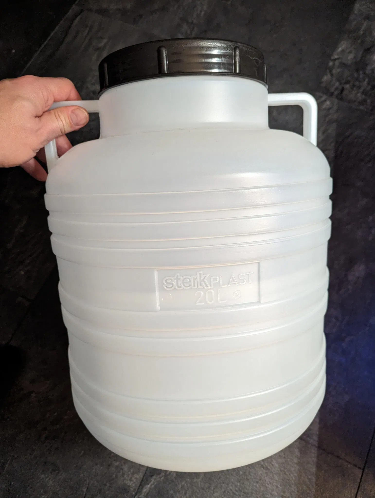 Tui mua một cái thùng 20L miệng rộng / thùng dưa cải (chiều rộng 20L: Ø 28 cm, chiều cao: 38 cm, miệng: Ø 14 cm) để làm đế cho Tháp Thủy canh.