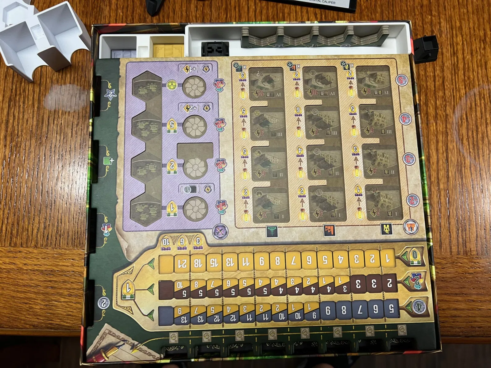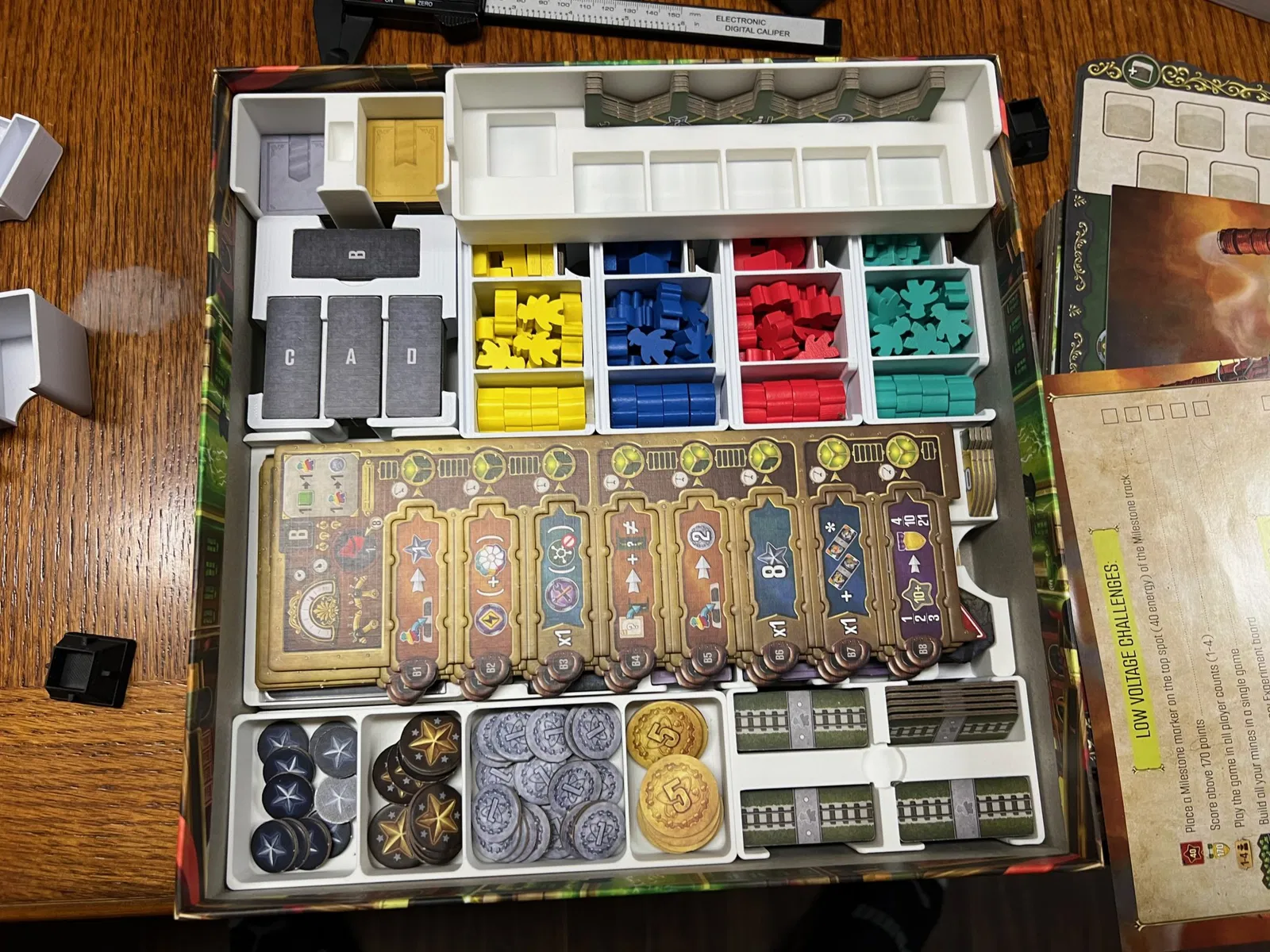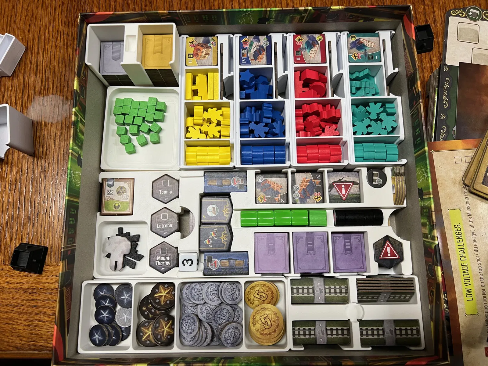 Tôi đã phải giảm số lượng thẻ hỗ trợ (không bọc) xuống chỉ còn những thẻ mô tả các nâng cấp công nghệ, và hai thẻ cho mỗi hành động cơ bản và hành động mở rộng. Các thẻ hỗ trợ còn lại có thể được đặt ở lớp trên cùng của insert nếu muốn.