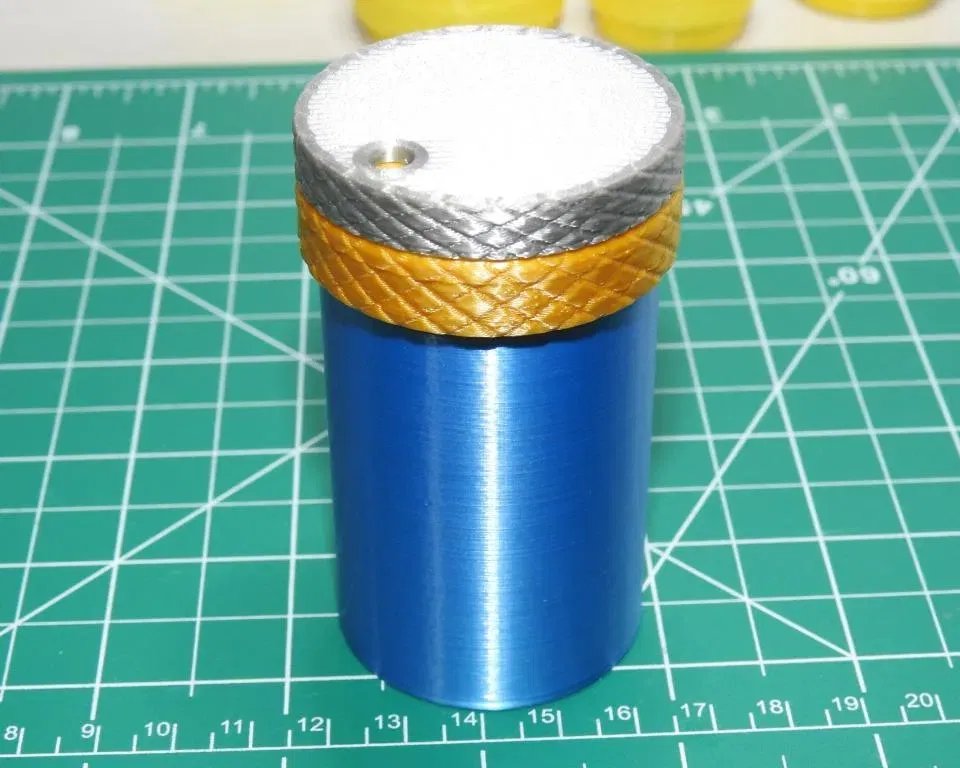 Các tệp đính kèm được đặt với chiều cao bên trong đáy là 65mm và đường kính bên trong là 40mm. Lỗ cho tăm có đường kính 5mm. Khoảng hở là 0.3mm (dùng cho ren và khe hở giữa nắp trên và nắp).