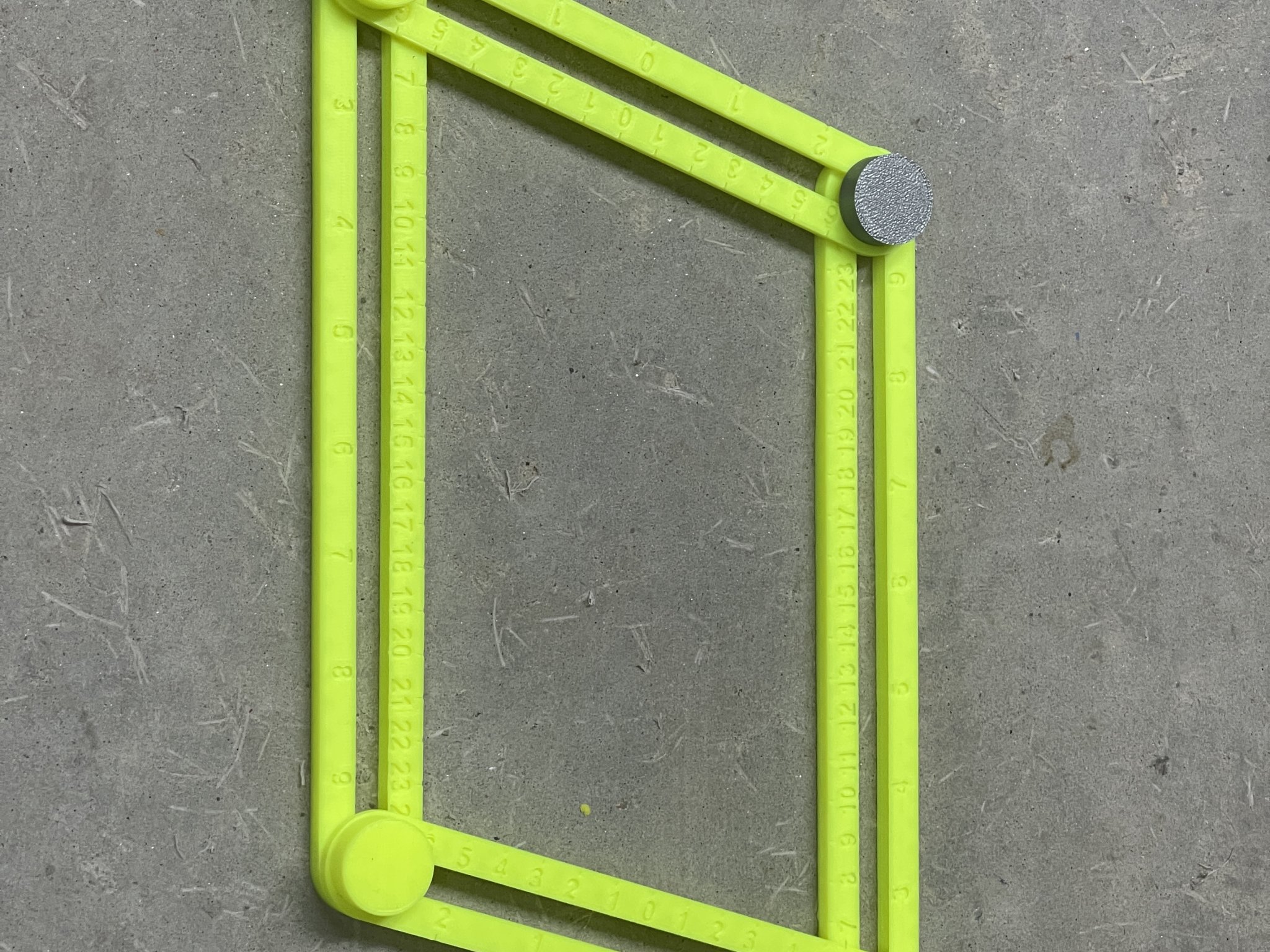 Căn chỉnh bốn cánh tay theo hình dạng mong muốn, rồi siết chặt các đai ốc để cố định chúng. Chúng thường được dùng làm bản vẽ cho cầu thang, bệ cửa sổ hoặc hoa văn trên gạch men. Số đo được cung cấp bằng cả hệ mét và inch.