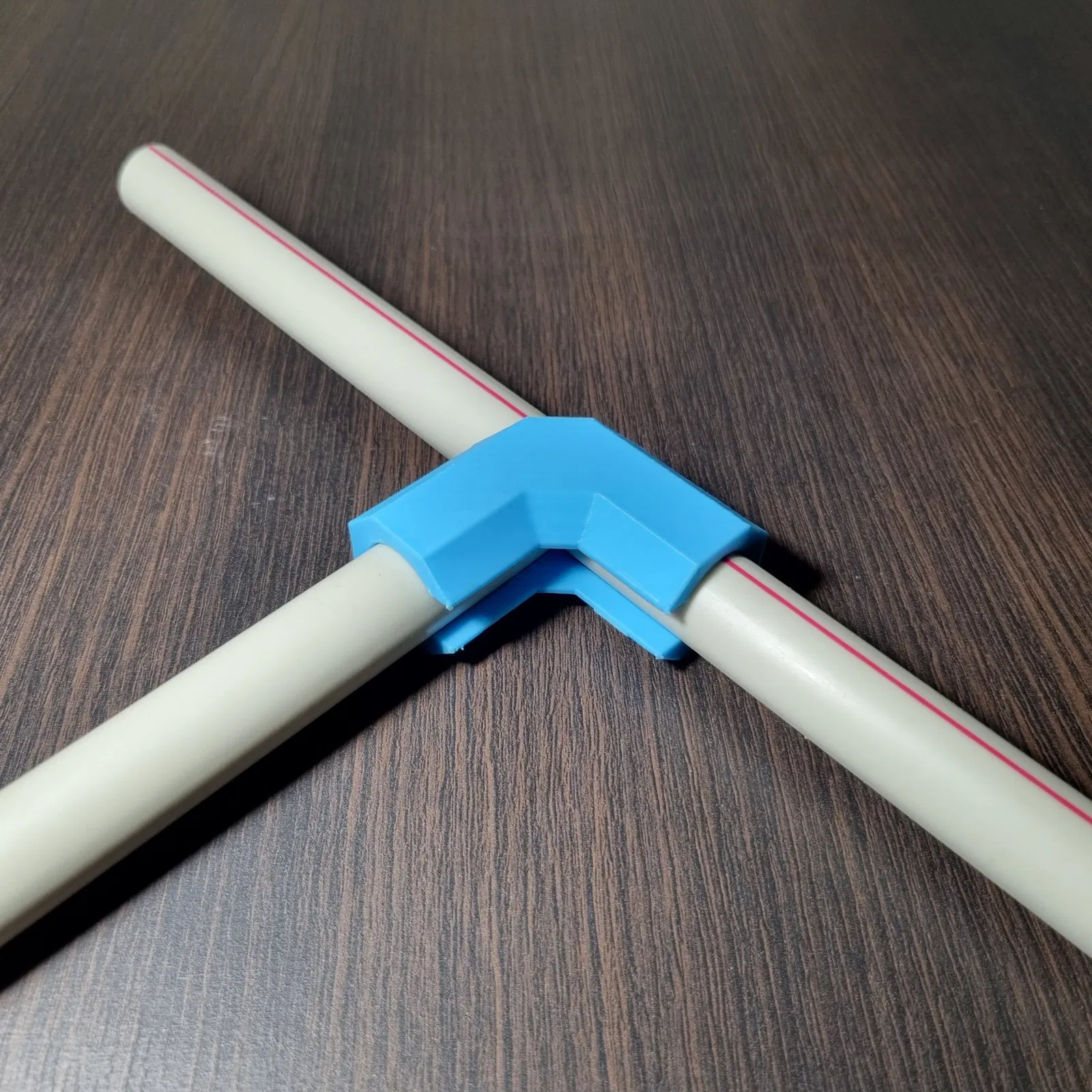 Cái co nối này cho phép bạn nối hai ống PVC phi 20mm với nhau theo góc 90 độ, như hình bên dưới - một ống có thể di chuyển tự do, ống còn lại được cố định và tùy chọn có thể dùng để giữ ống kia cố định.