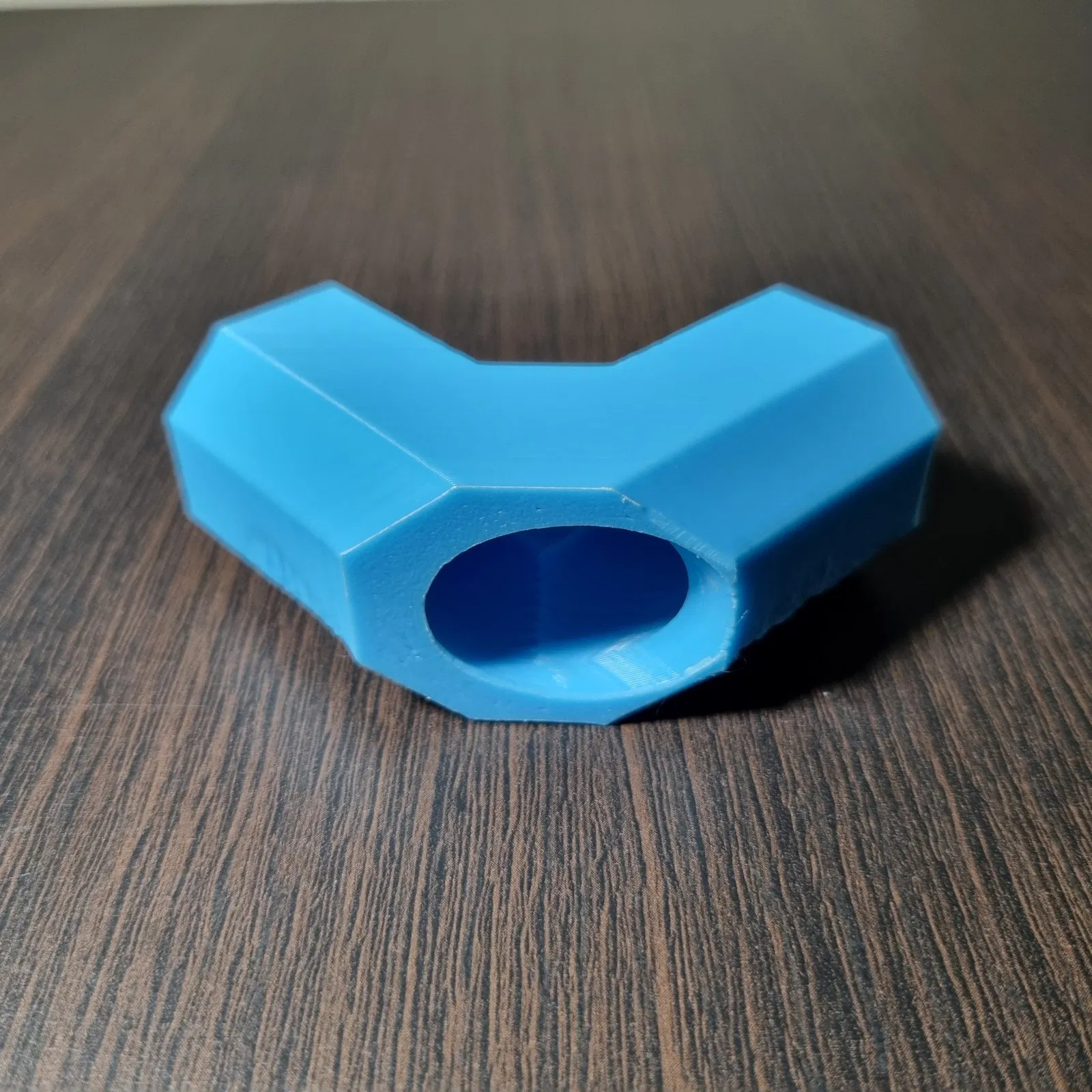 Dùng để nối hai ống PVC phi 20mm lại với nhau theo góc 90 độ. Một ống có thể di chuyển tự do, ống kia được cố định hoặc dùng để chặn ống kia. Mô hình này không cần support, chỉ cần in với brim.