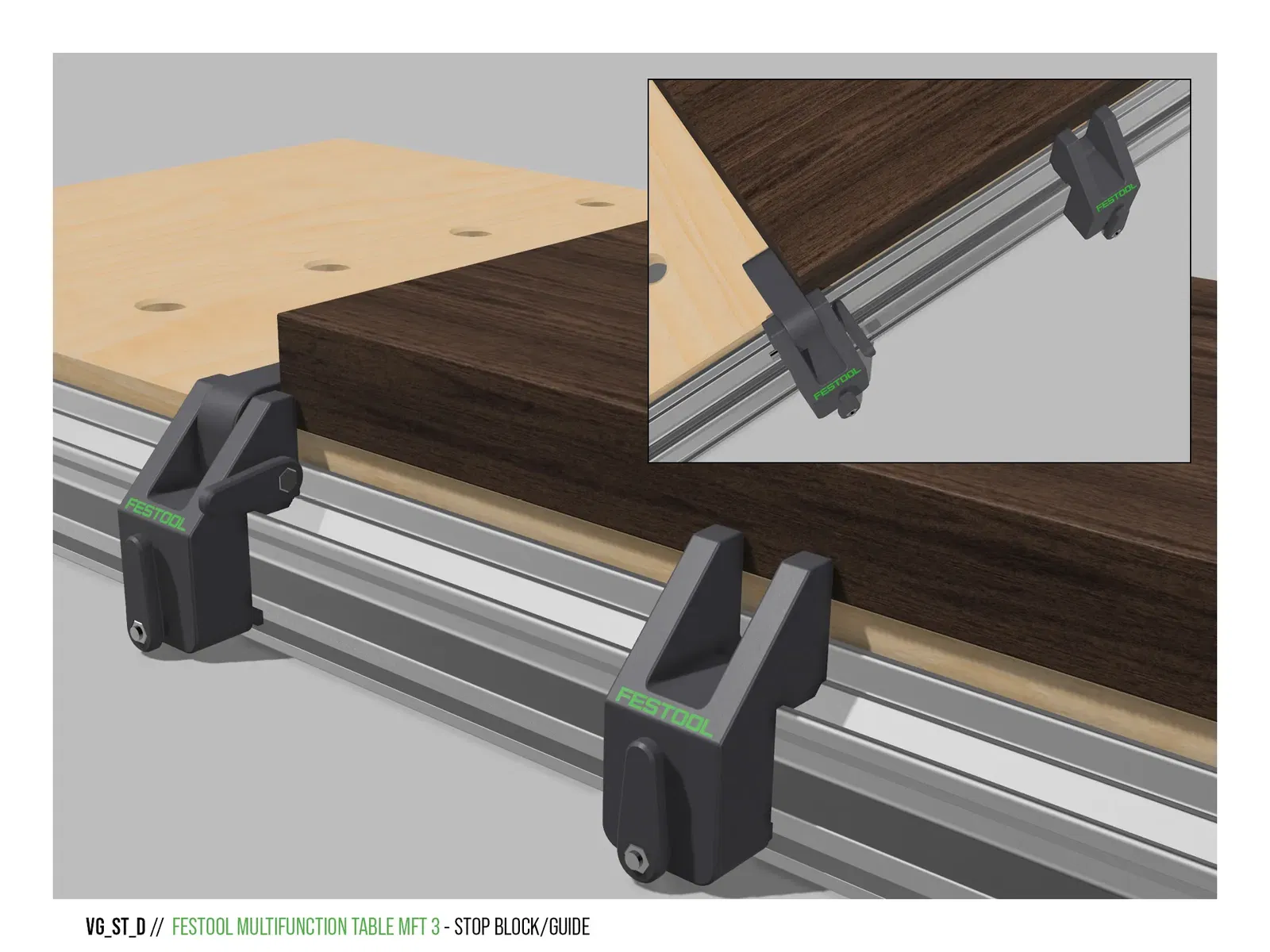 Khám phá bộ chặn và thanh dẫn hướng được thiết kế cho bàn Festool MFT 3, giúp bạn đo và khóa kích thước cắt chính xác. Phụ kiện này dễ lắp ráp, tương thích với nhiều máy in 3D và mang lại giải pháp tối ưu cho xưởng chế tạo của bạn.