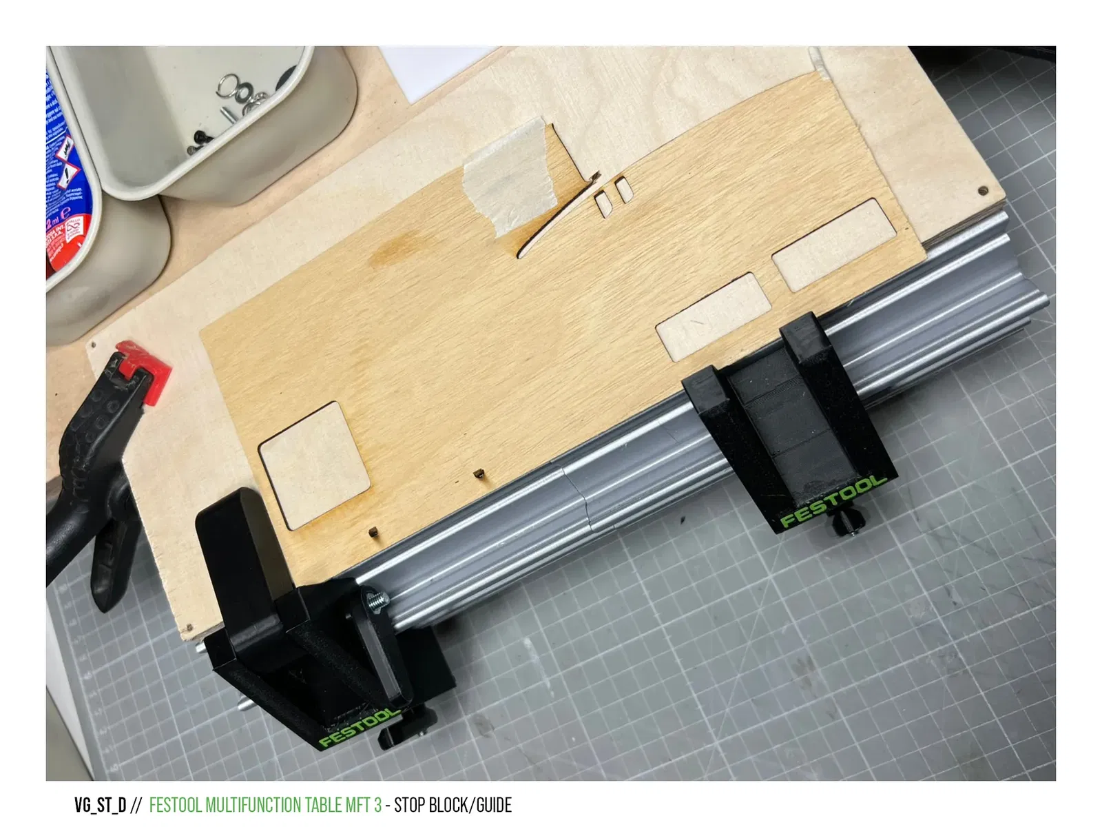 Ý tưởng và Cảm hứng Chức năng này đã truyền cảm hứng cho tôi để điều chỉnh một cơ chế tương tự cho bàn đa năng Festool MFT 3. Ý tưởng là đo và khóa kích thước cắt, đồng thời sử dụng các thanh dẫn hướng để đảm bảo đường cắt thẳng.
