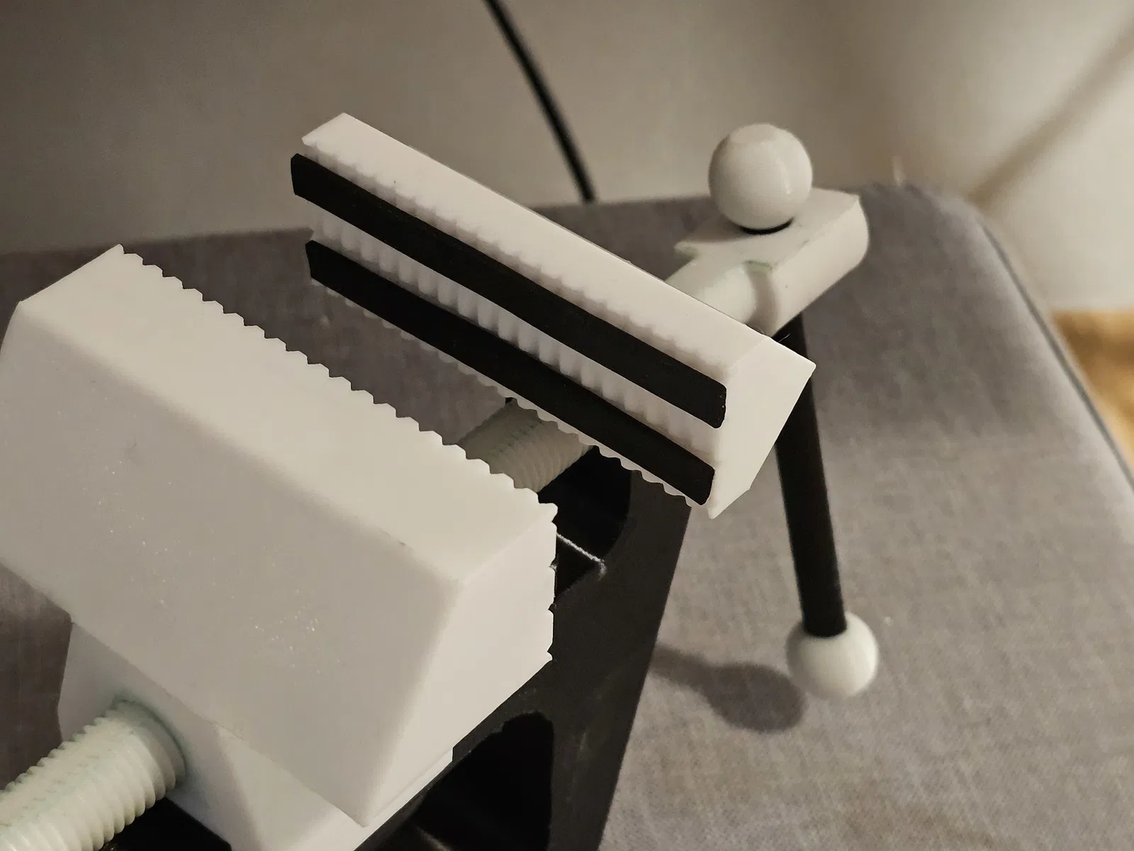 Ê tô bàn có thể kẹp vào các mặt bàn có độ dày tối đa 50mm. Bản cập nhật gần đây đã cải thiện vít và ren để tăng độ bền và dễ sử dụng. Ngoài ra còn có hướng dẫn về cài đặt in 3D và vật liệu in PETG. Liên kết bổ sung cho khu vực đỡ ê tô cũng được cung cấp.
