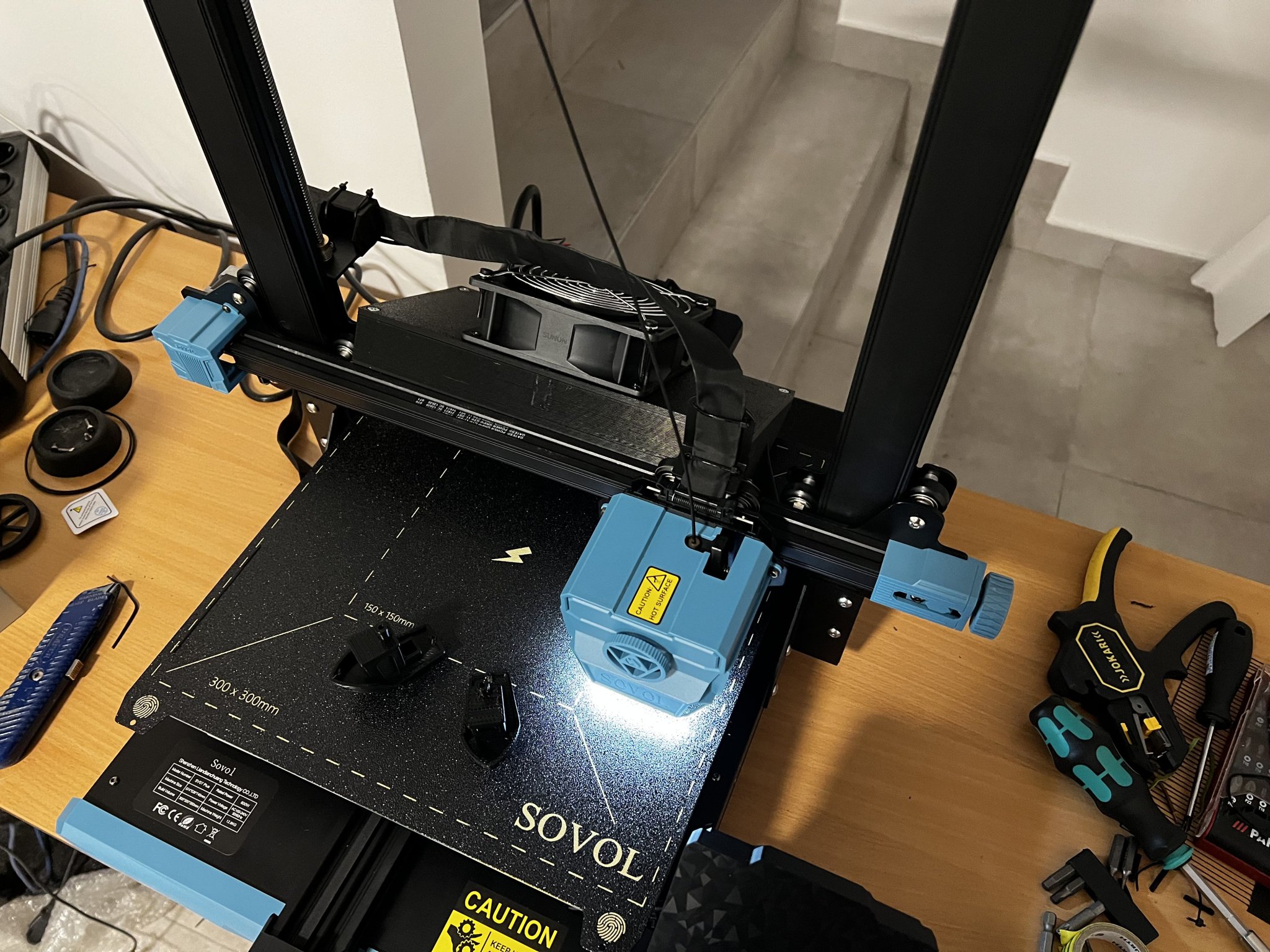 Quạt phụ trợ/quạt làm mát bộ phận trên sv07plus khá ồn và chỉ làm mát được phần giữa của bàn in... Mình đã làm một cái quạt rộng hơn, có thể gắn được 2 quạt 120mm để bạn có thể sử dụng quạt 24V 120mm của Sunon hoặc Noctua và có công suất làm mát cao hơn nhiều mà tiếng ồn lại êm hơn quạt zin.