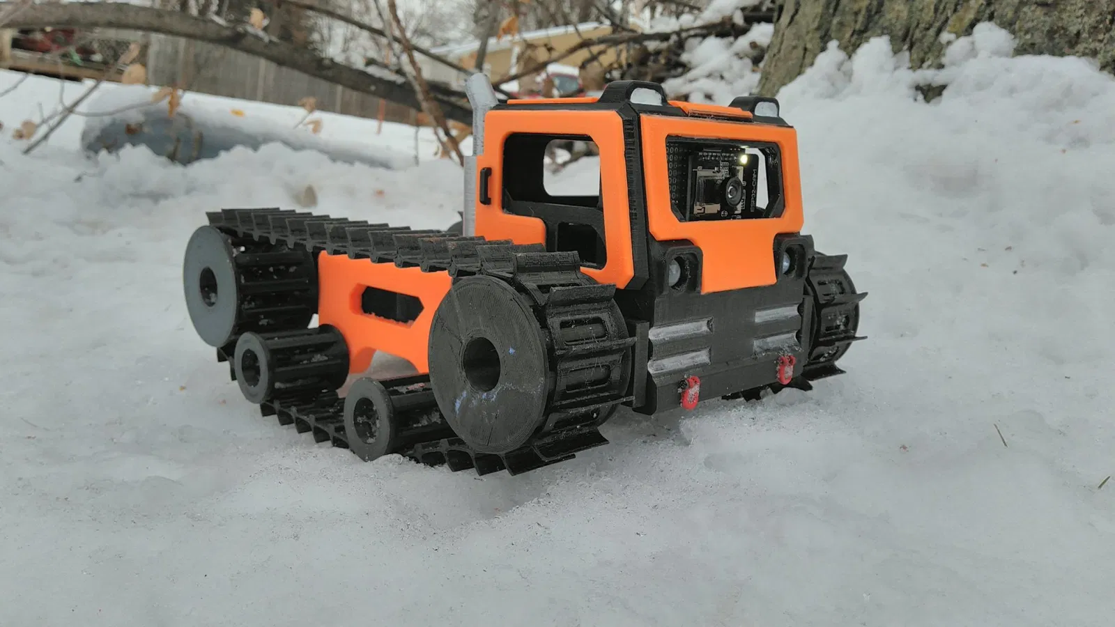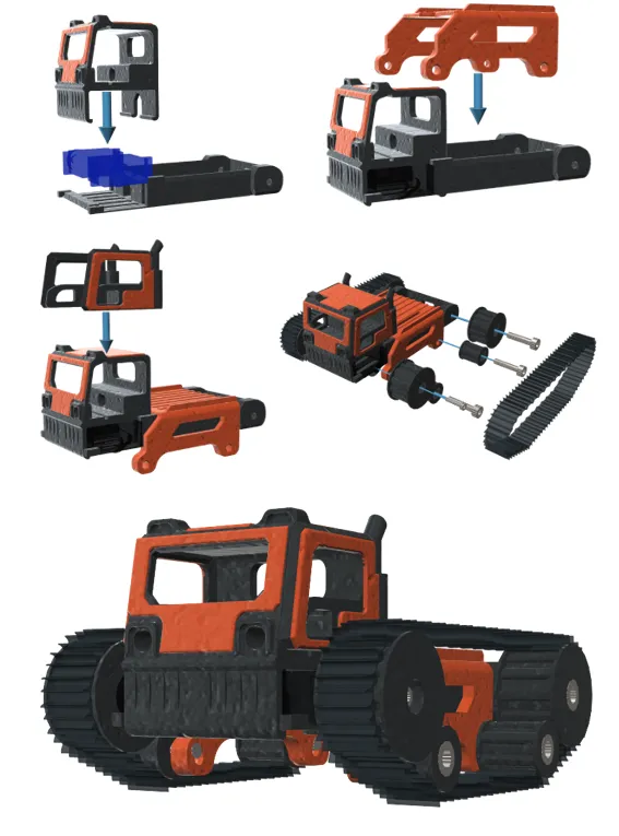 Scout là một xe FPV micro bánh xích sử dụng tất cả các bộ phận in 3D ráp nối với nhau và servo SG90, tạo ra một nền tảng rẻ tiền và linh hoạt cho người đam mê. Phần cabin được thiết kế giống với xe loại "snowcat" cỡ lớn, với các chi tiết tỷ lệ như đèn pha 5mm, cửa ra vào và ống xả. Có một thùng xe lớn, cho phép gắn pin lớn bằng dây velcro, với đủ không gian dưới thùng để chứa thiết bị điện tử.