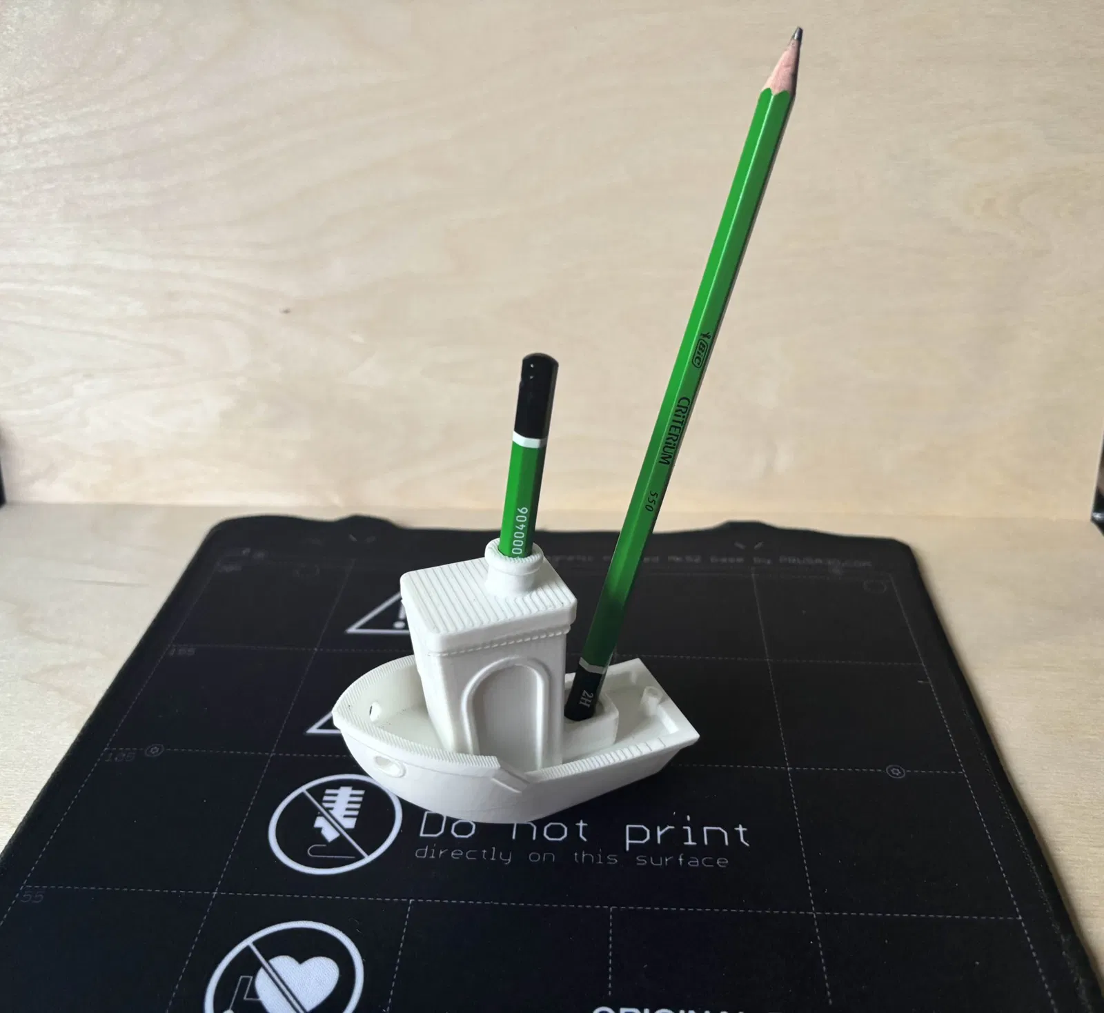 Biến Benchy thành hộp bút chì ẩn dưới mái che tháo rời. Ống khói là chỗ cắm bút, khoang thuyền đựng vụn. Dễ in, dễ lắp, chỉ cần lưỡi dao và ốc vít có sẵn. Thêm chút độc đáo cho bàn làm việc!