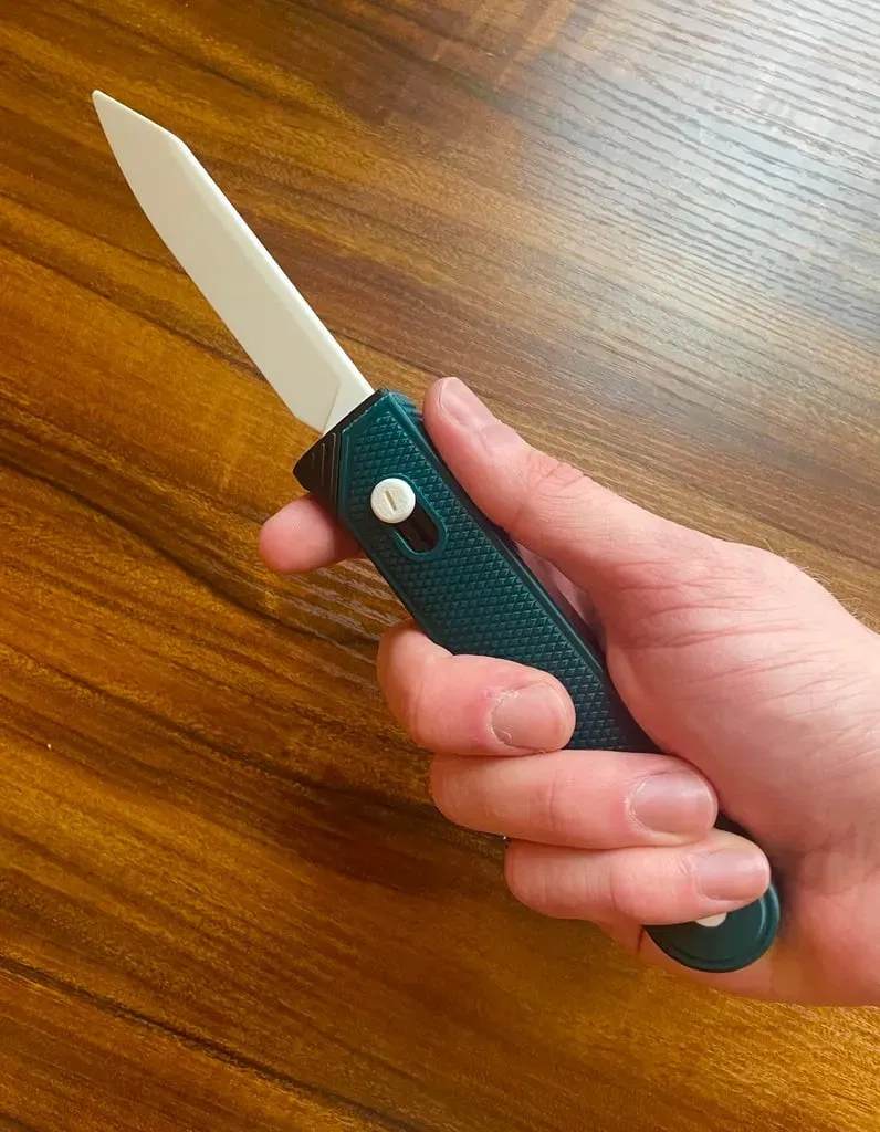 • Khi lắp ráp dao, điều quan trọng cần lưu ý là hướng của bộ trượt linh hoạt. Các mặt của nó bị vát nên nó chỉ hoạt động theo một hướng cụ thể, điều này có thể thấy rõ nhất trong ảnh động.